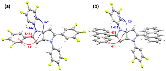 Bond lengths and dihedral angles in the single-crystal structures of (a) PP-6F and (b) PPA-3F.