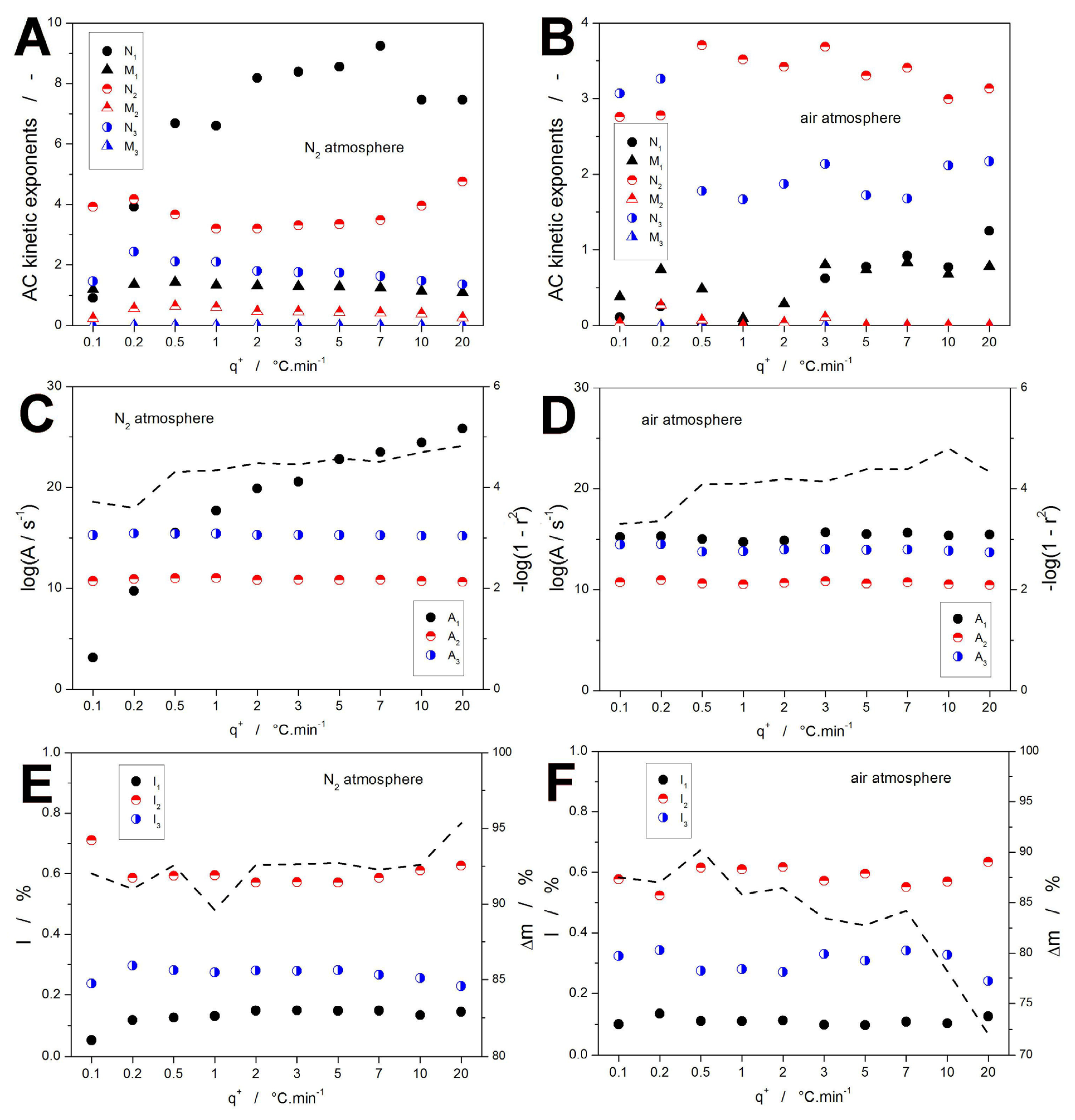- Koga, N.; Šesták, J. Kinetic compensation effect as a mathematical consequence of the exponential rate constant. Thermochim. Acta 1991, 182, 201–208. [Google Scholar] [CrossRef]