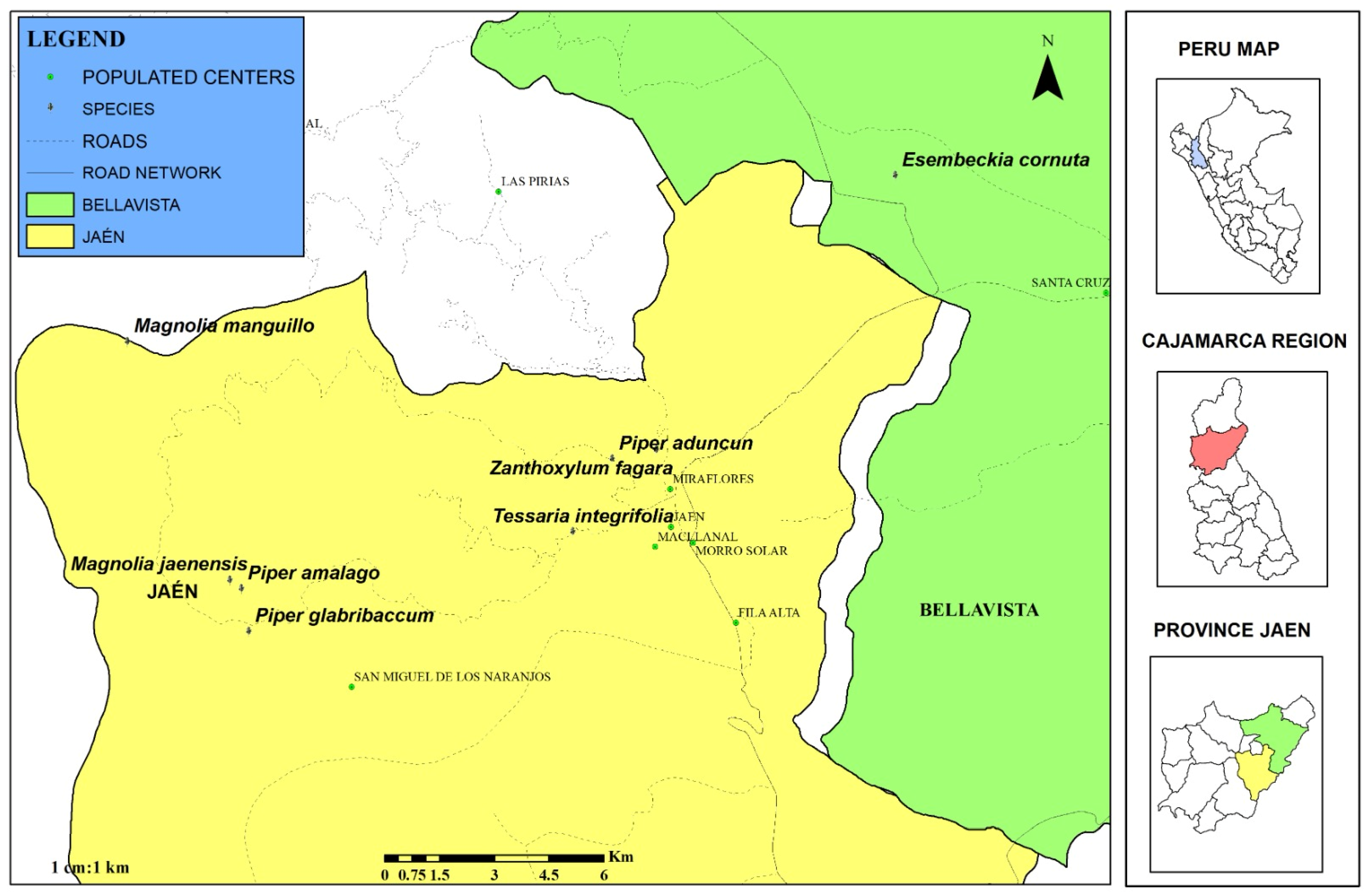 - Marcelo-Peña, J.L. Vegetación Leñosa, Endemismos y Estado de Conservación En Los Bosques Estacionalmente Secos de Jaén, Perú. Rev. Peru. Biol. 2008, 15, 43–52. [Google Scholar] [CrossRef]