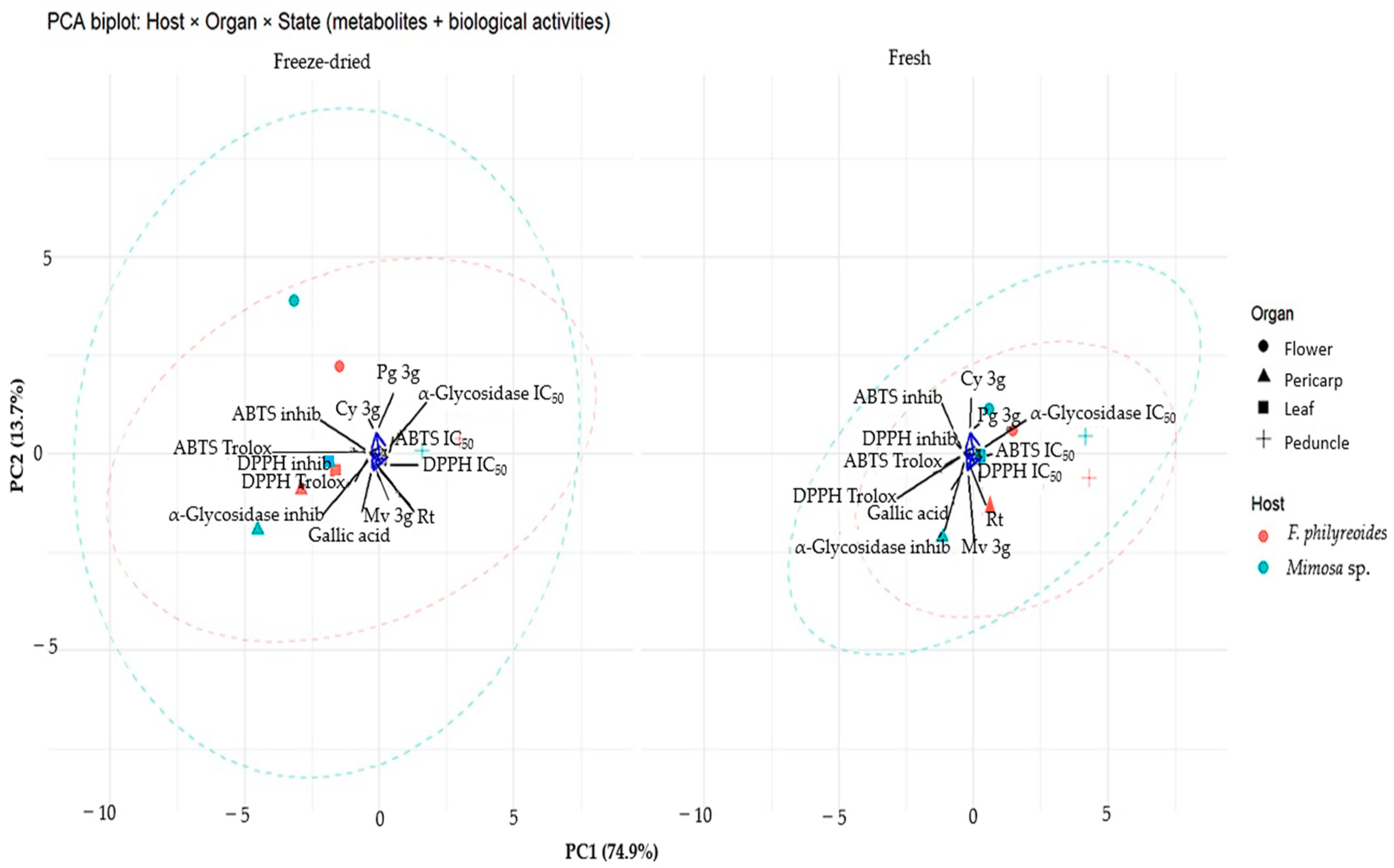2.3.5. Effect of Host, Organ, and Processing on P. calyculatus