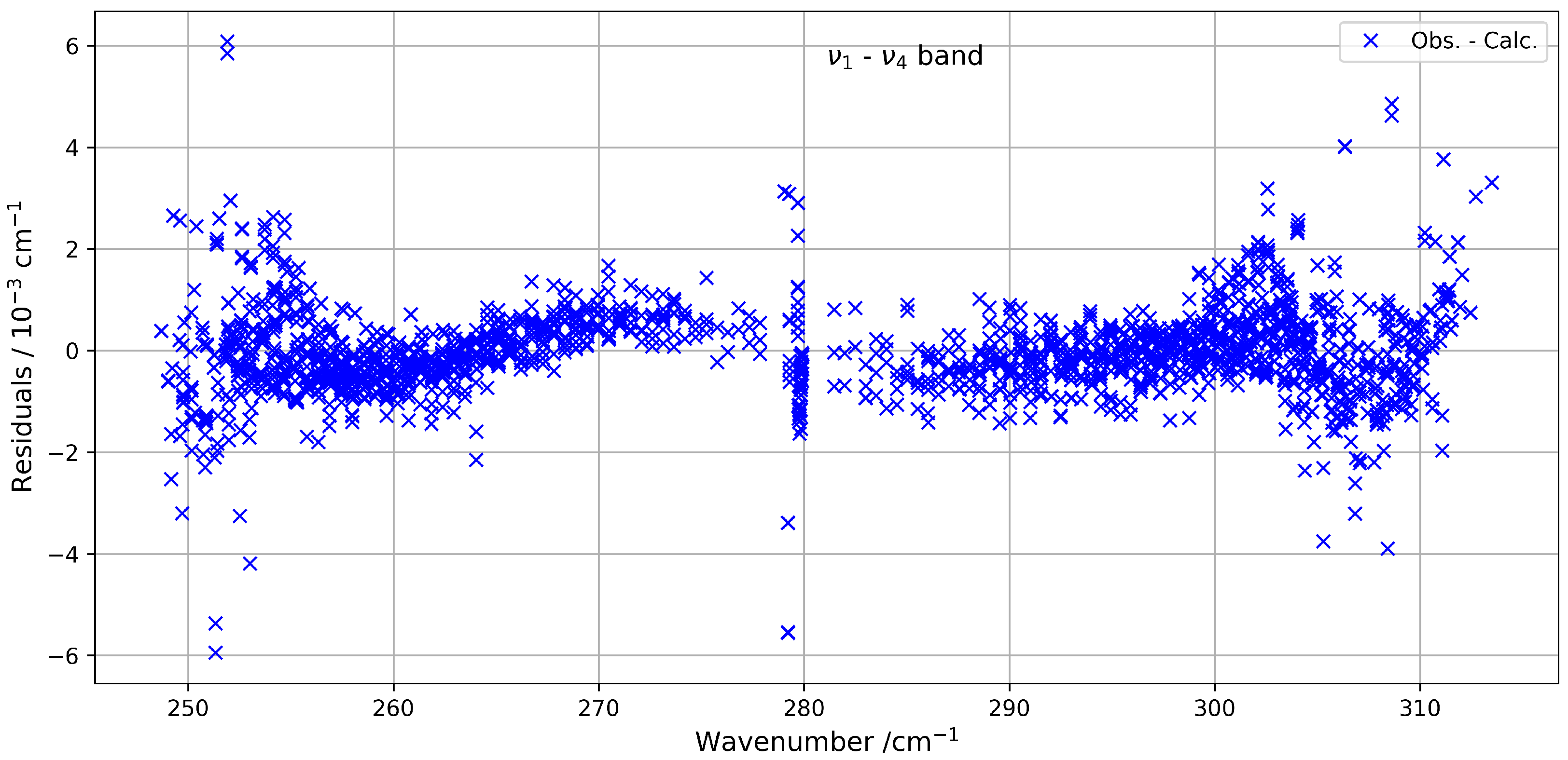 APA StyleBen Fathallah, O., Terrier, R., Manceron, L., Richard, C., & Boudon, V. (2025). Rovibrational Analysis of the ν1, ν4, ν1 + ν4 and ν1 − ν4 Bands of 13CF4. Molecules, 30(21), 4267. https://doi.org/10.3390/molecules30214267