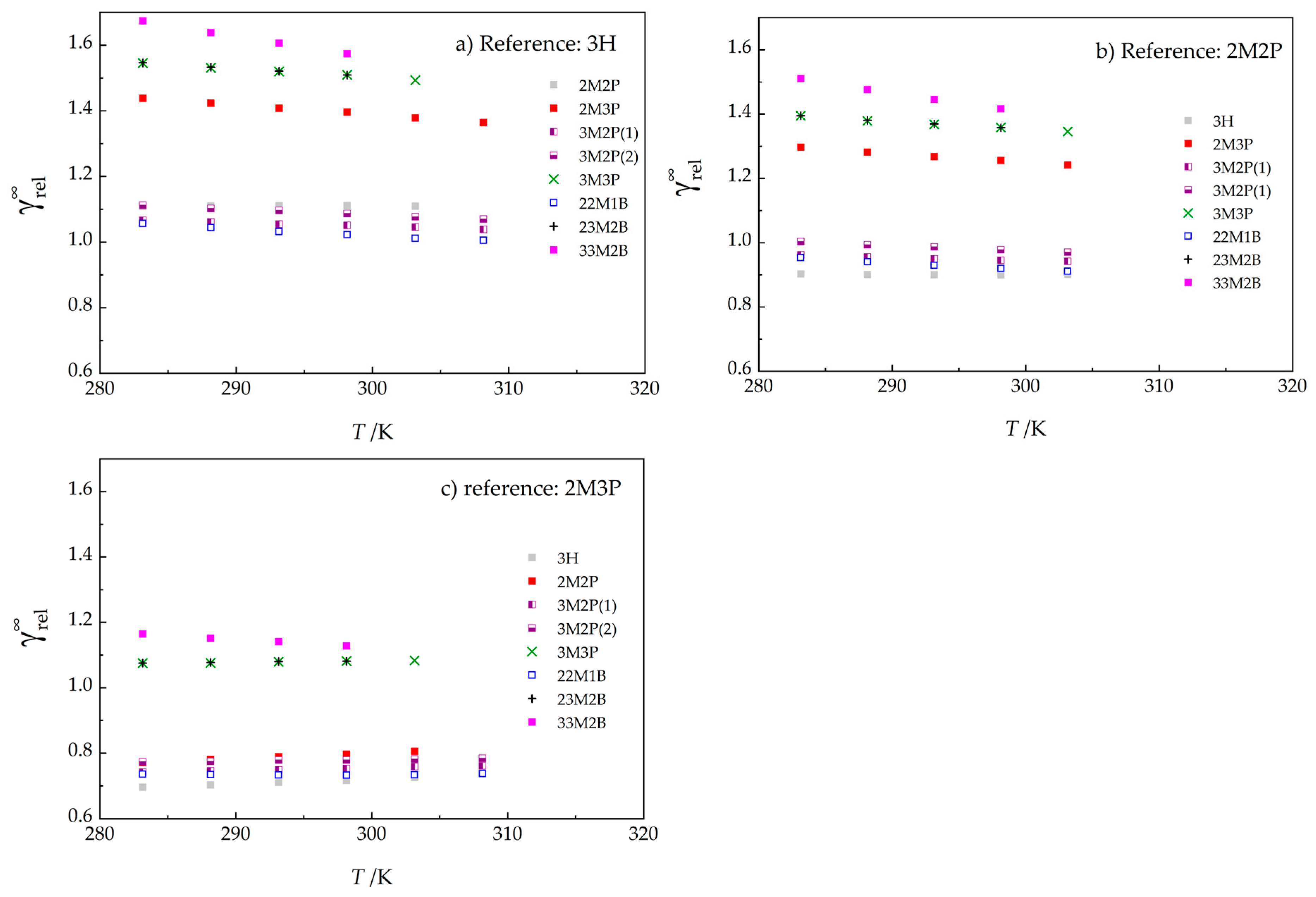 - Orbey, H.; Sandler, S.I. Relative Measurements of Activity-Coefficients at Infinite Dilution by Gas-Chromatography. Ind. Eng. Chem. Res. 1991, 30, 2006–2011. [Google Scholar] [CrossRef]