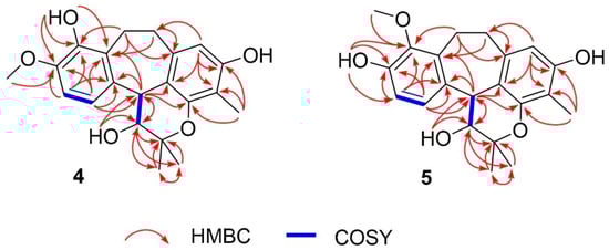 1H-1H COSY and full HMBC correlations of 4 and 5.