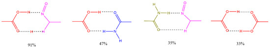 Common supramolecular synthons formed from carboxylic acids, amides, pyridines, and other aromatic nitrogens and their frequency of occurrence in the structures reported in CSD.