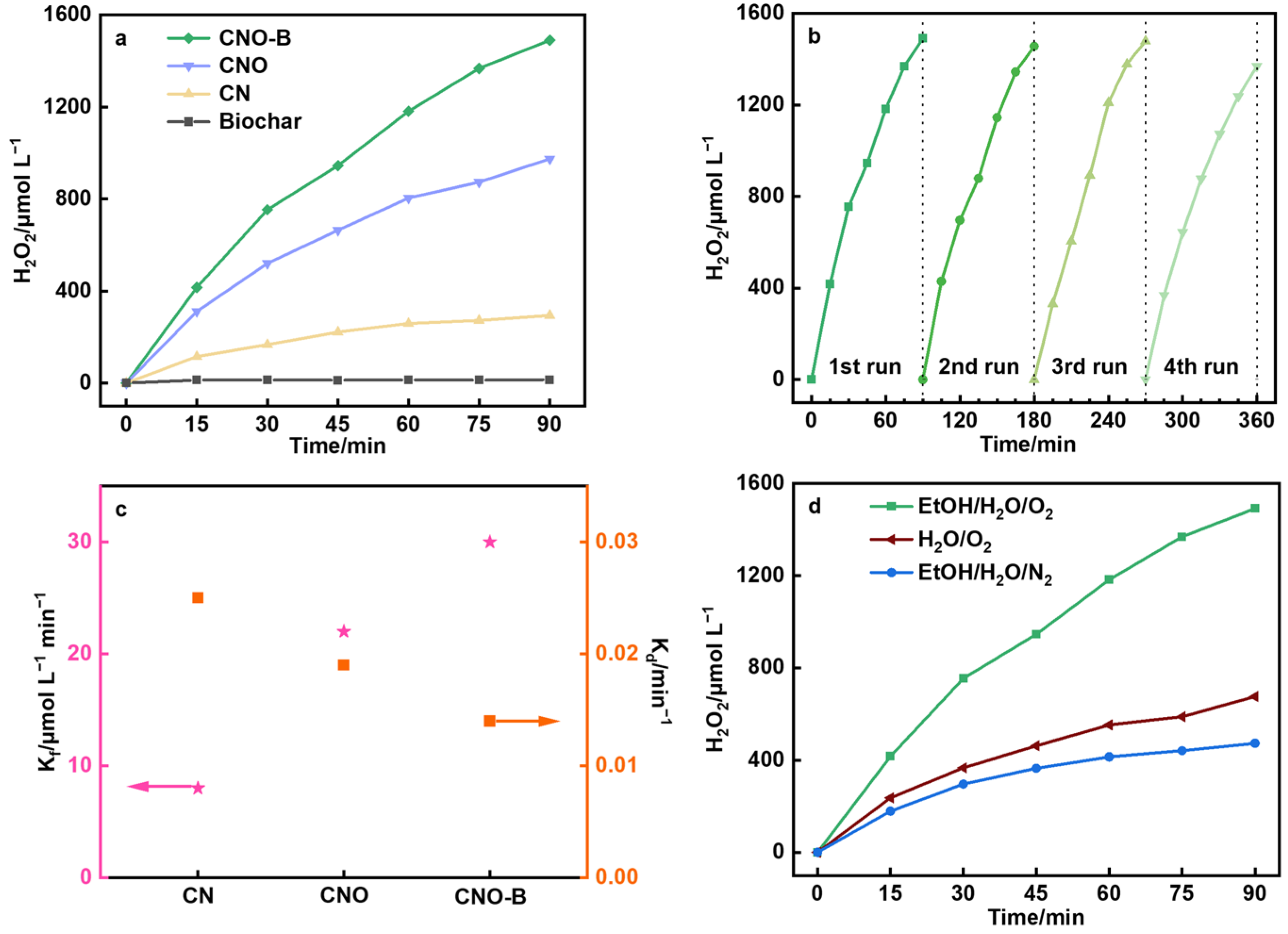 Chicago/Turabian StyleCheng, Ruolin, Yue Wang, and Shijian Lu. 2025. "Synergistic Enhancement of Photocatalytic H2O2 Production over Carbon Nitride Oxide/Biochar Composites" Molecules 30, no. 22: 4323. https://doi.org/10.3390/molecules30224323