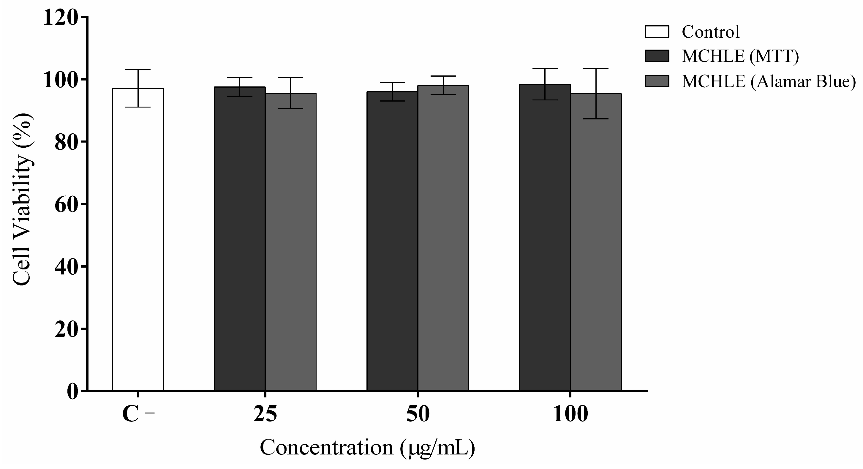 - Batista, D.; Luz, J.R.D.; Nascimento, T.E.S.; Senes-Lopes, T.F.; Galdino, O.A.; Silva, S.V.; Ferreira, M.P.; Azevedo, M.A.S.; Brandão-Neto, J.; Araujo-Silva, G.; et al. Licania rigida leaf extract: Protective effect on oxidative stress, associated with cytotoxic, mutagenic and preclinical aspects. J. Toxicol. Environ. Health A 2022, 85, 276–290. [Google Scholar] [CrossRef] [PubMed]