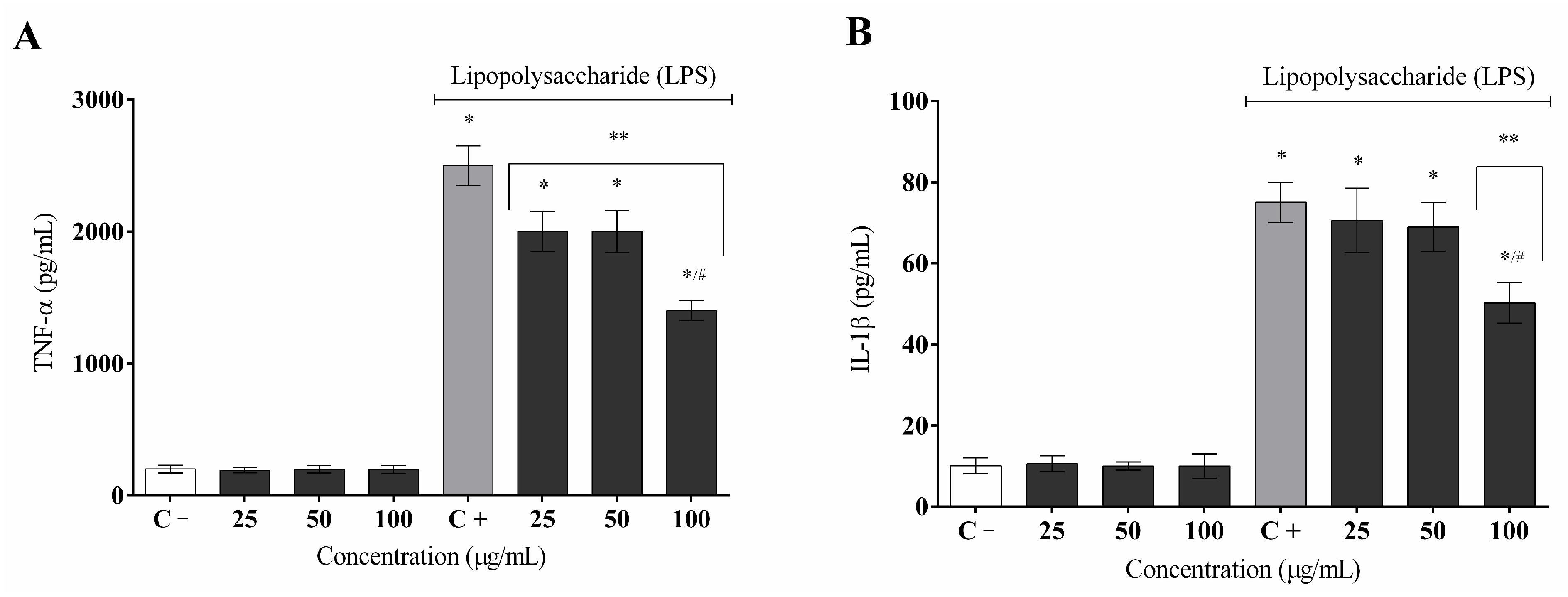 4.10. Cytokine Measurement (TNF-α and IL1-β)