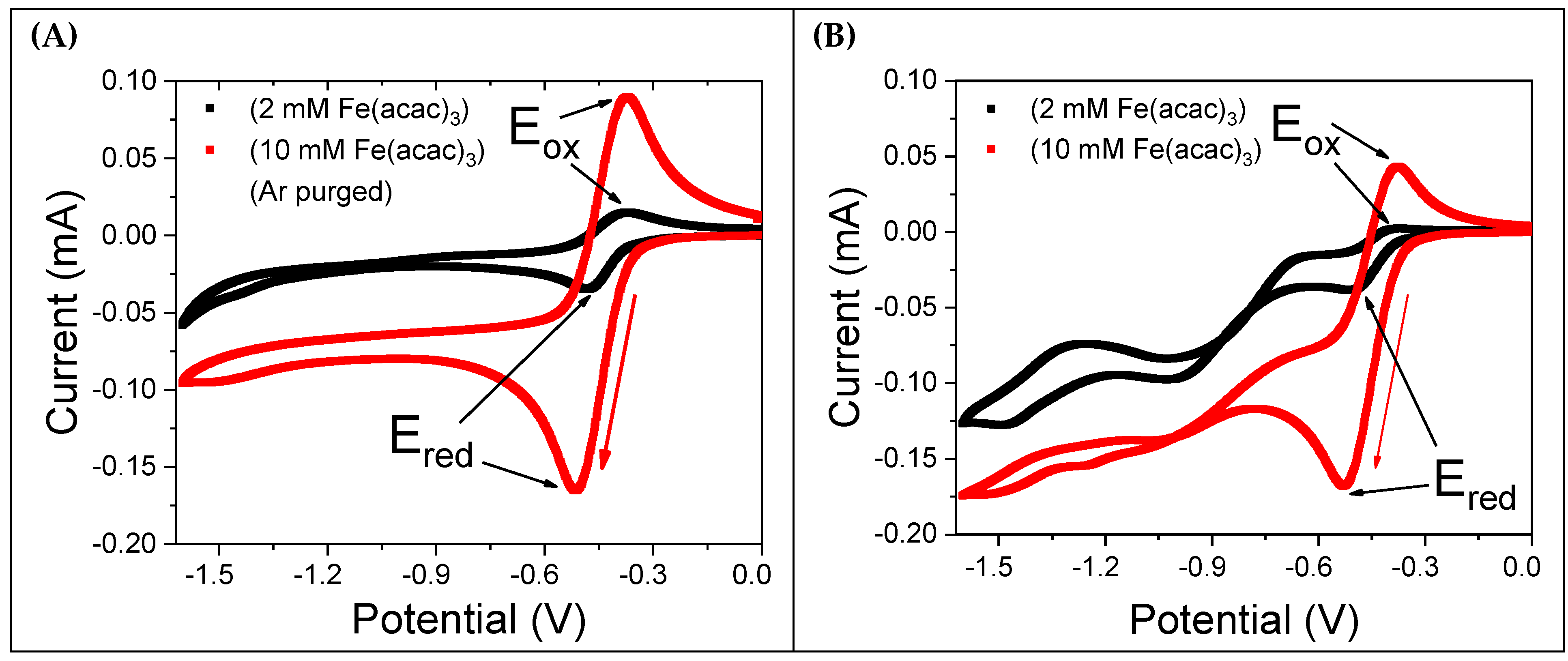 3.2. Concentration-Dependent Electrochemical Activity of Fe(acac)3