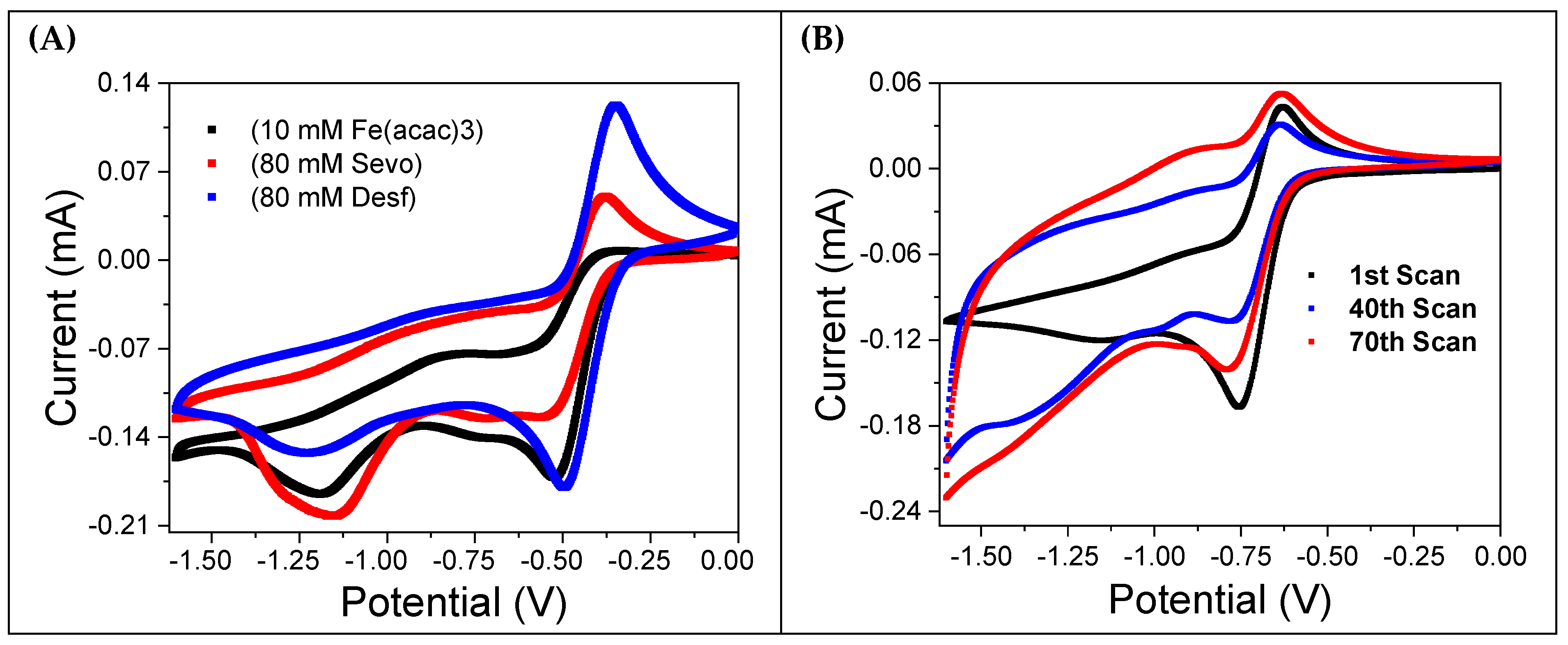 3.4. Influence of Sevoflurane and Desflurane on the Electrochemical Behavior of Fe(acac)3