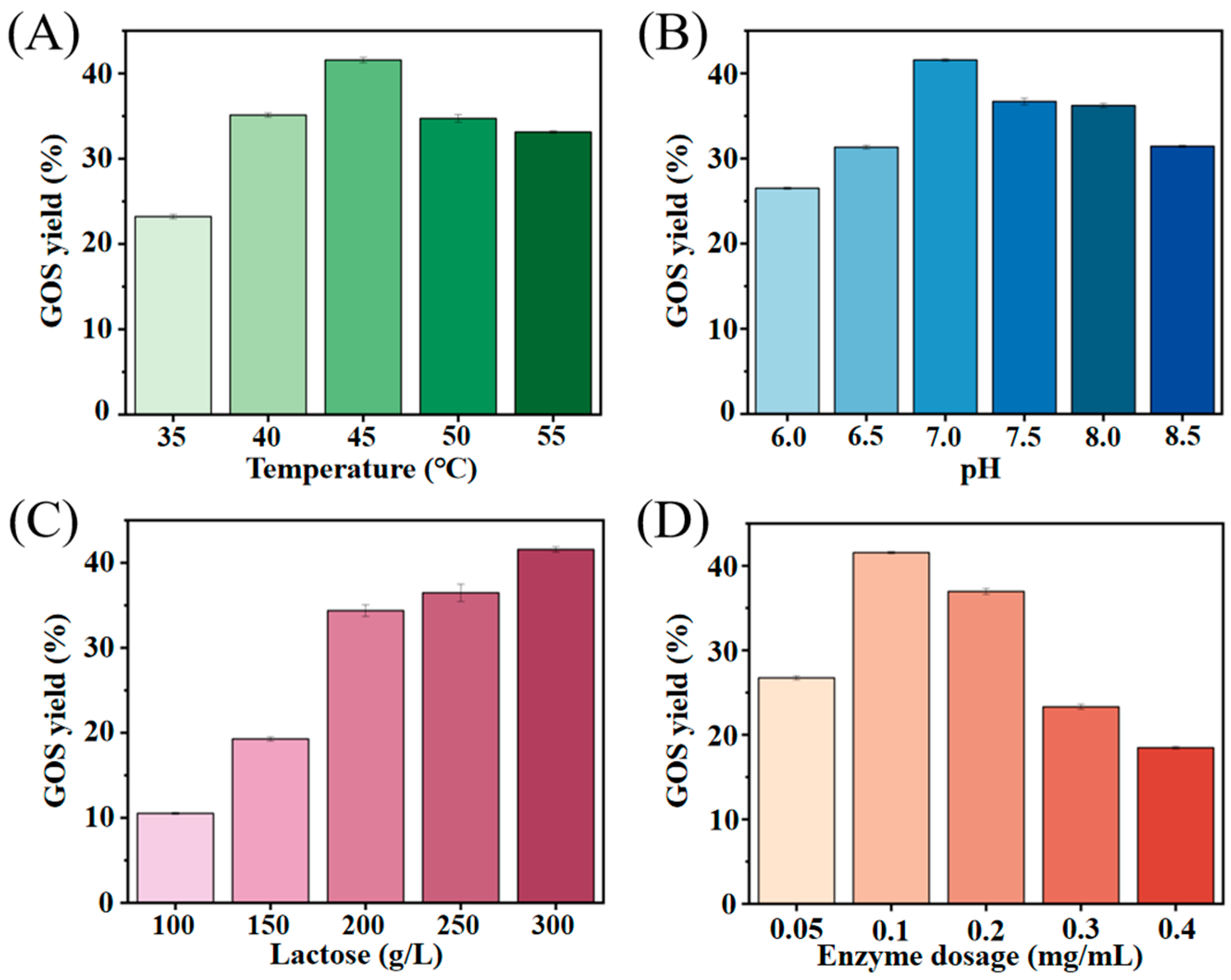 - Yu, H.Y.; Wang, Y.L.; Yang, Z.S.; Ying, J.B.; Guan, F.F.; Liu, B.L.; Miao, M.; Mohamed, A.; Wei, X.; Yang, Y.J.; et al. Enhancing the synthesis efficiency of galacto-oligosaccharides of a β-galactosidase from Paenibacillus barengoltzii by engineering the active and distal sites. Food Chem. 2025, 483, 144208. [Google Scholar] [CrossRef]