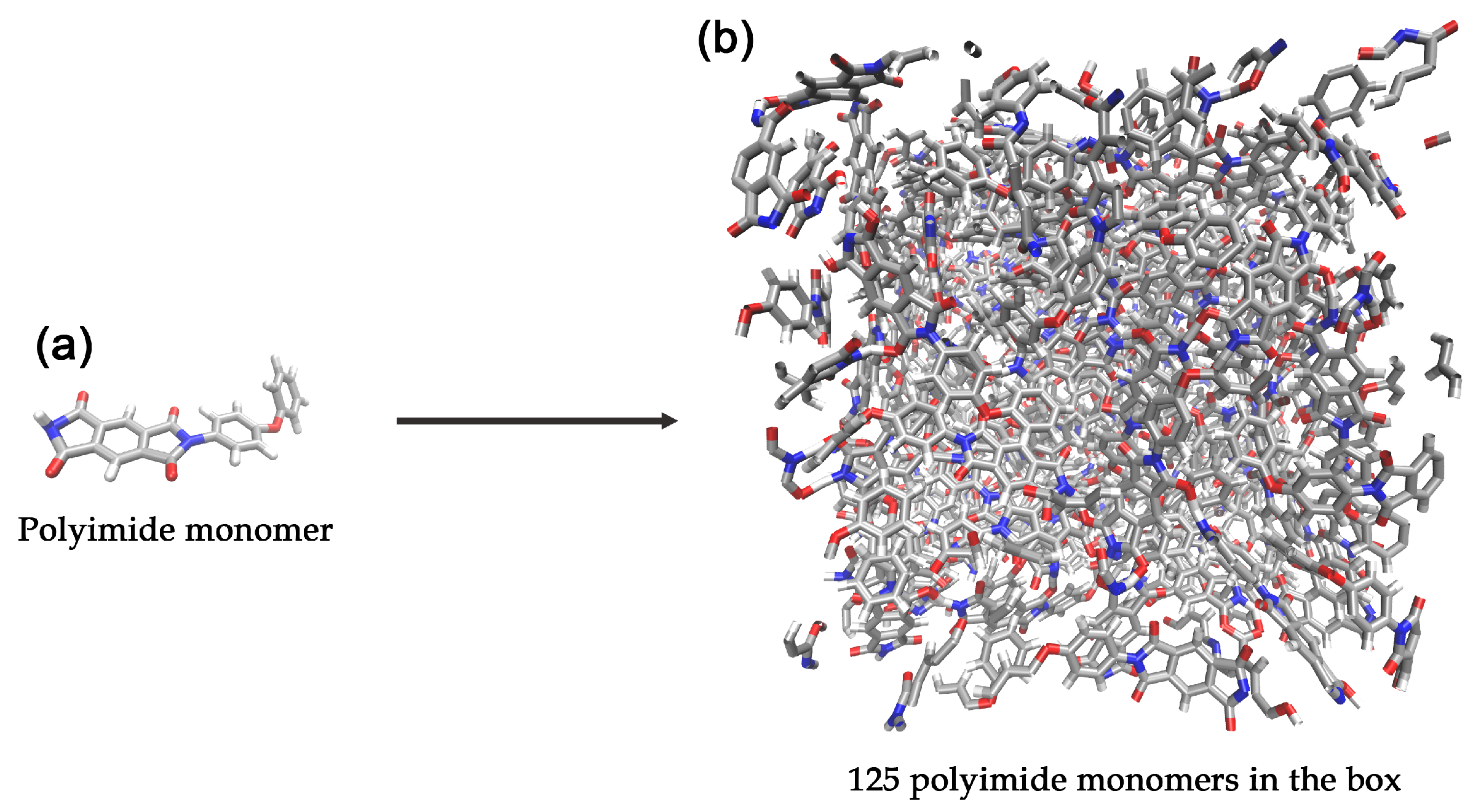 - Lu, X.; Wang, X.; Li, Q.; Huang, X.; Han, S.; Wang, G. A ReaxFF-based molecular dynamics study of the pyrolysis mechanism of polyimide. Polym. Degrad. Stab. 2015, 114, 72–80. [Google Scholar] [CrossRef]
