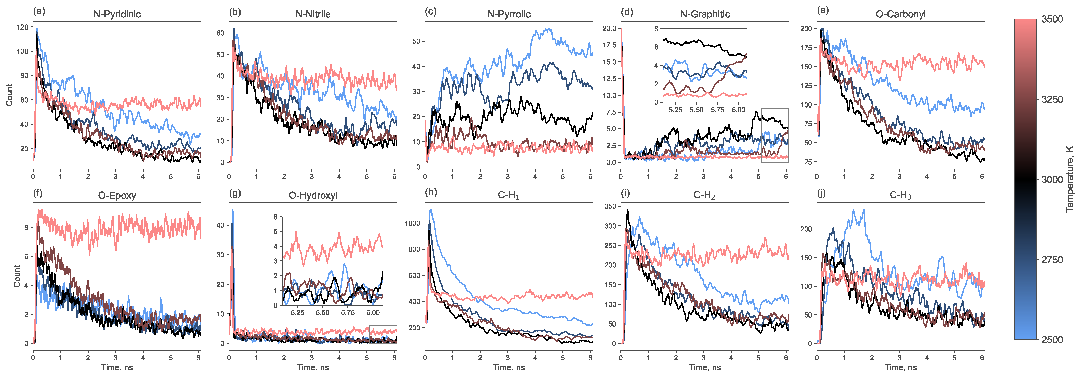 - Bian, Y.; Zhang, W.; Wu, T.; Wang, D. ReaxFF MD simulations of graphitization of intact and O, N-doped amorphous carbon. Phys. Chem. Chem. Phys. 2025, 27, 12584–12592. [Google Scholar] [CrossRef] [PubMed]