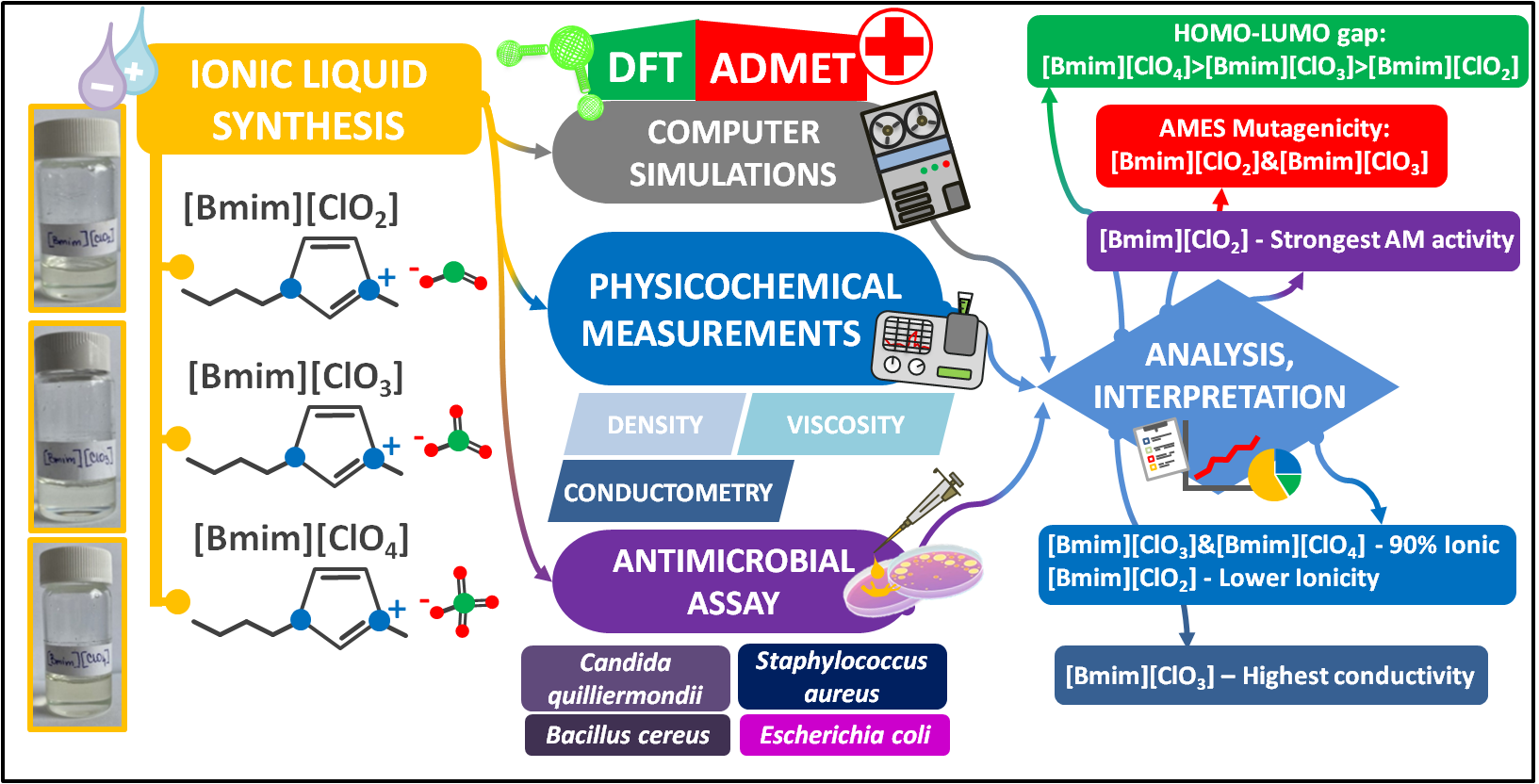 Chicago/Turabian StyleVraneš, Milan B., Eleonora Čapelja, Maja Karaman, Teona Teodora Borović, Andrija Vukov, Sara Klimenta, Vesna Rastija, and Jovana J. Selak. 2025. "Synthesis, Physicochemical Characterization, Antimicrobial Properties, and DFT/ADMET Calculations of Imidazolium-Based Ionic Liquids with a Homologous Series of Oxychlorine Anions" Molecules 30, no. 22: 4346. https://doi.org/10.3390/molecules30224346
