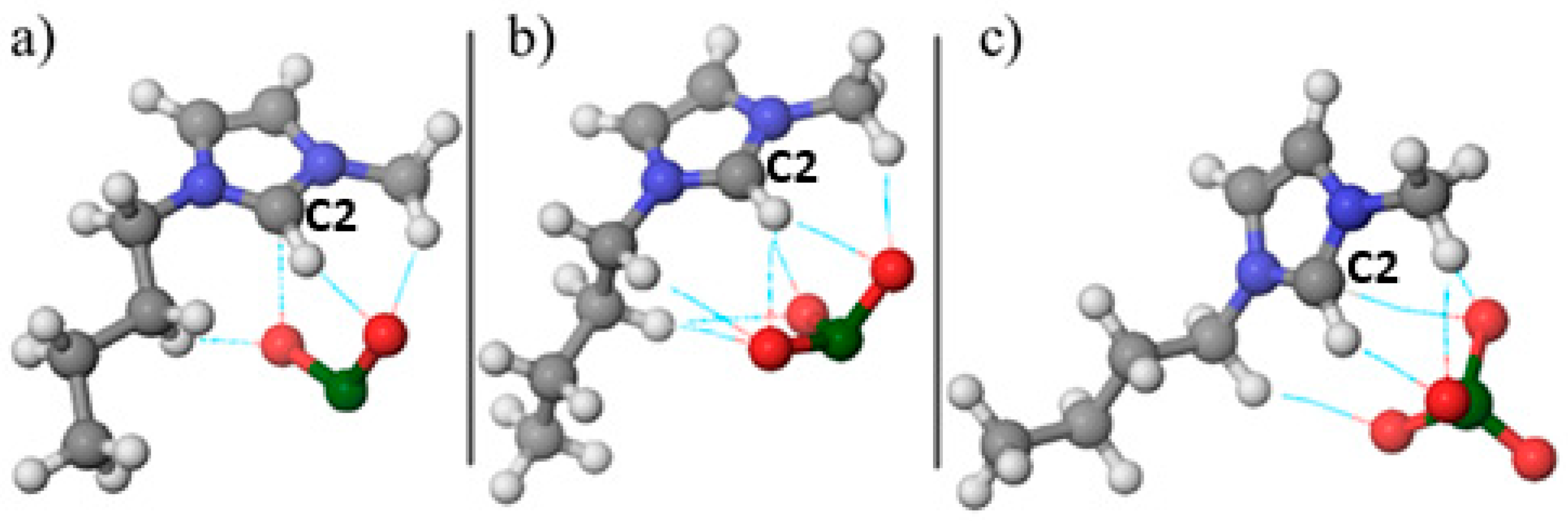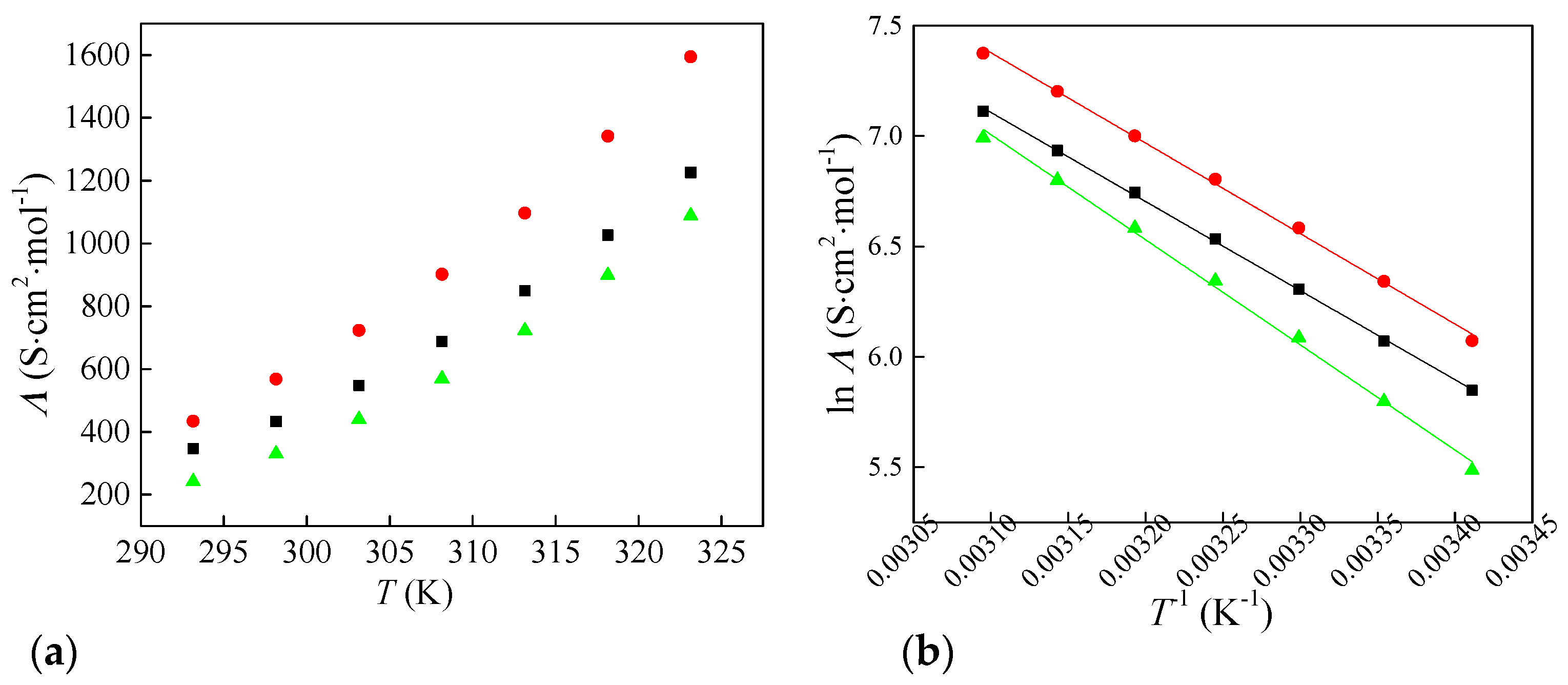 | Λ (S·cm2·mol−1) | [Bmim][ClO2] | 0.347 | 0.433 | 0.548 | 0.688 | 0.849 | 1.027 | 1.226 |
