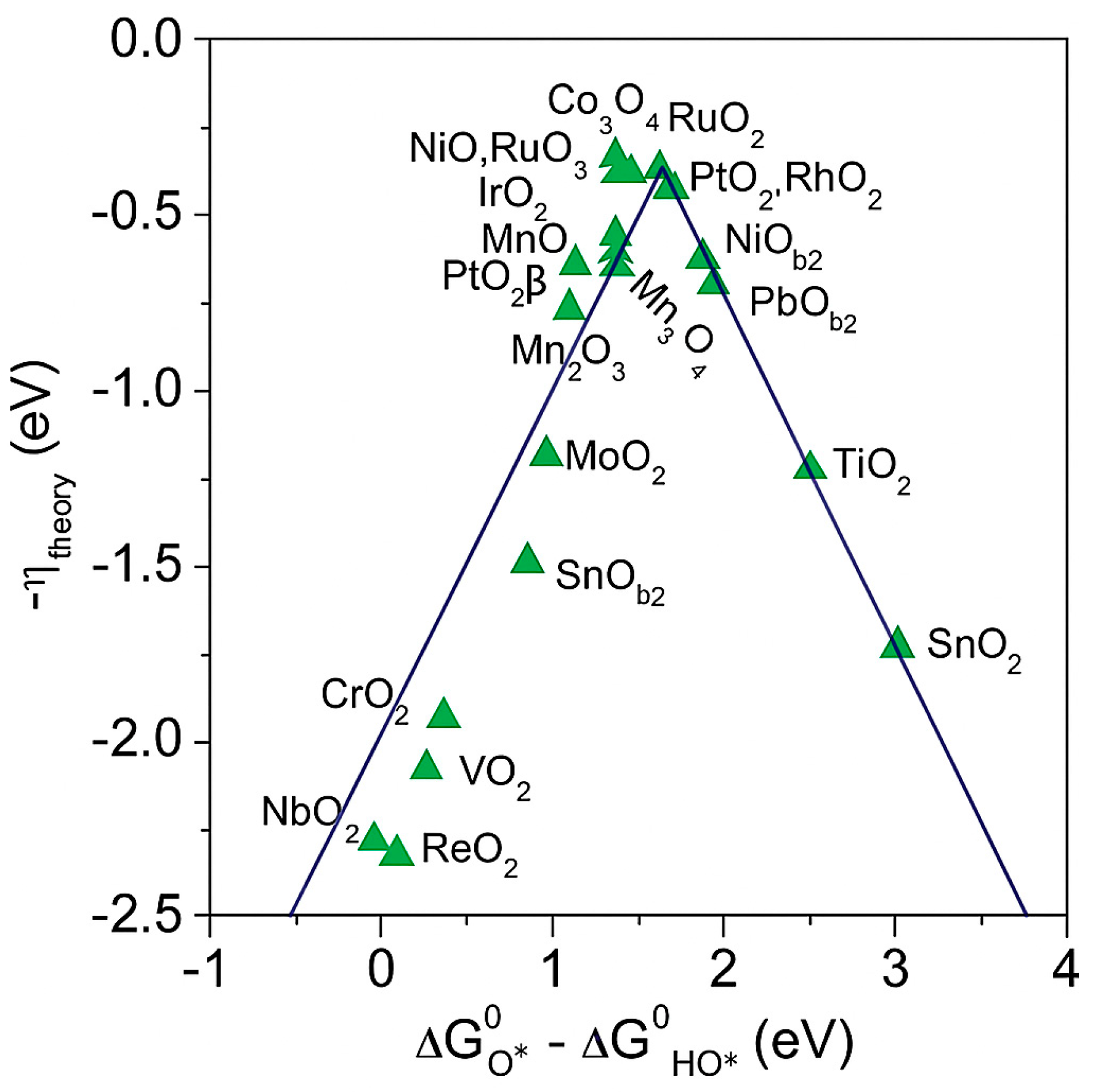 - Exner, K.S. Four generations of volcano plots for the oxygen evolution reaction: Beyond proton-coupled electron transfer steps? Acc. Chem. Res. 2024, 57, 1336–1345. [Google Scholar] [CrossRef]