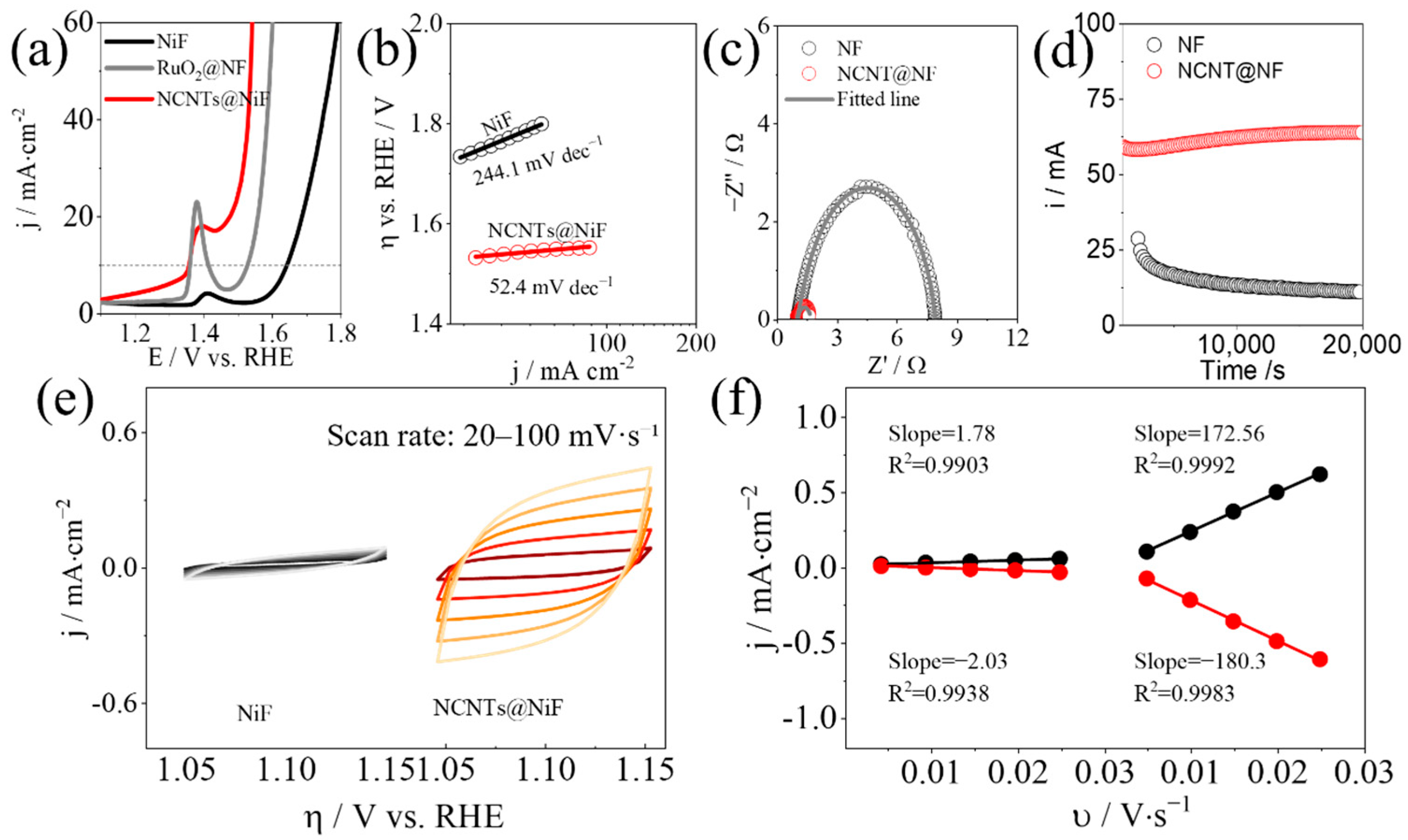 | Materials | Overpotential /mV | Tafel Slope /mV·dec−1 | Stability /h | |