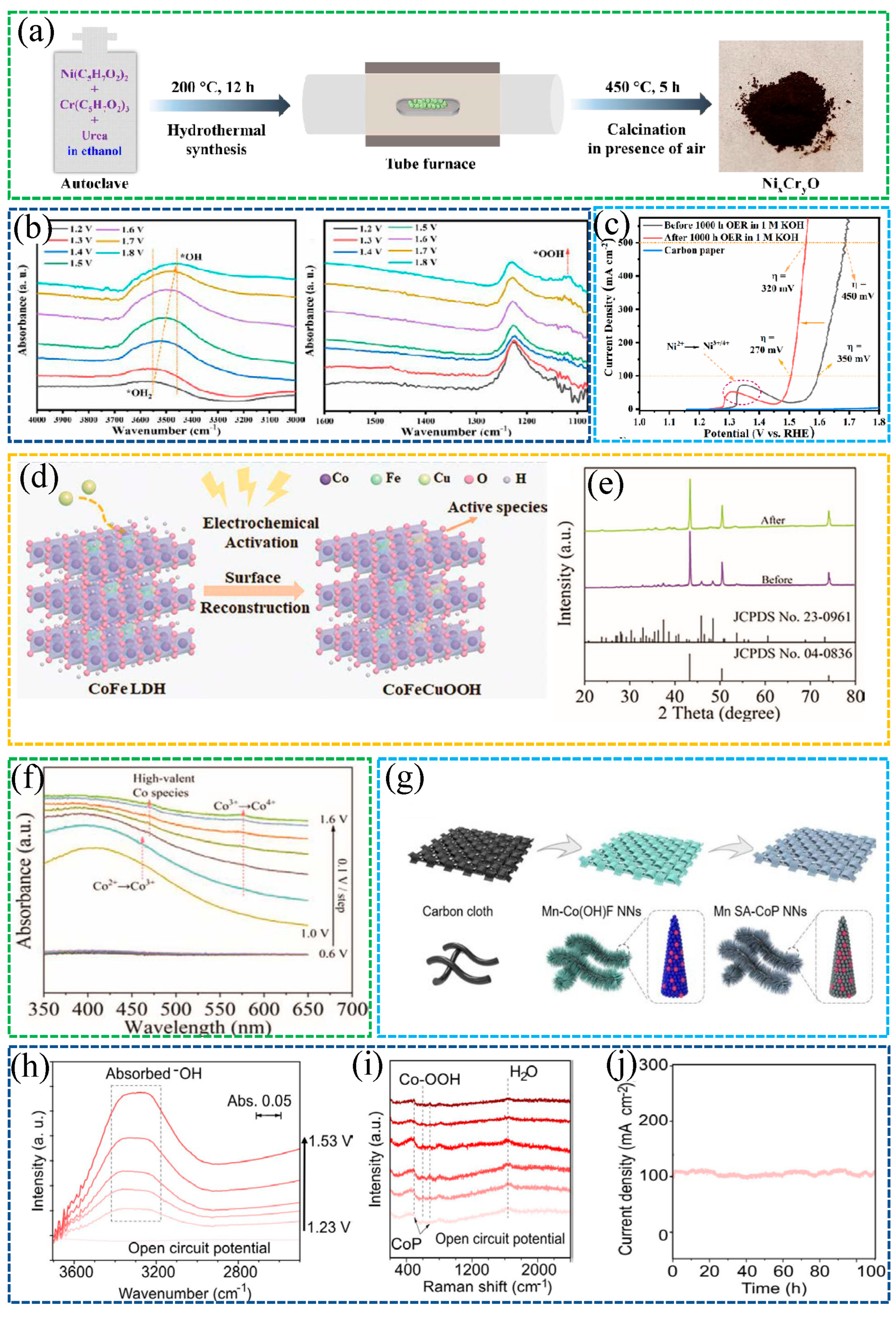 - Shi, F.; Xiao, L.; Zhou, Z.; Zhao, X.; Liu, Y.; Mao, J.; Qin, J.; Deng, Y.; Yang, J. Accelerating the Transformation of Active β-NiOOH on NiFe Layered Double Hydroxide via Cation–anion Collaborative Coordination for Alkaline Water Oxidation at High Current Densities. Adv. Funct. Mater. 2025, 35, 2501070. [Google Scholar] [CrossRef]