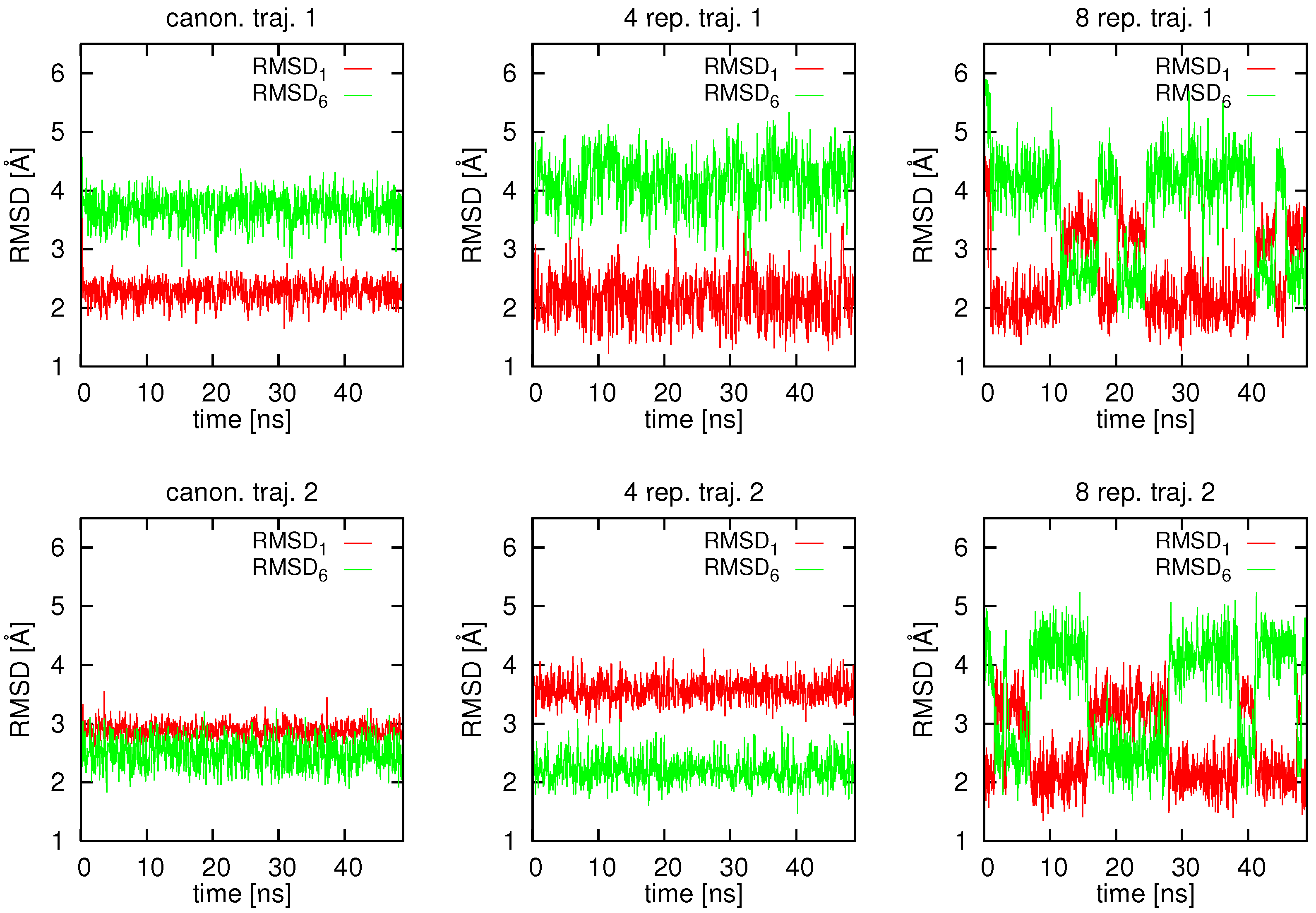 - Rhee, Y.M.; Pande, V.S. Multiplexed-replica exchange molecular dynamics method for protein folding simulation. Biophys. J. 2003, 84, 775–786. [Google Scholar] [CrossRef]