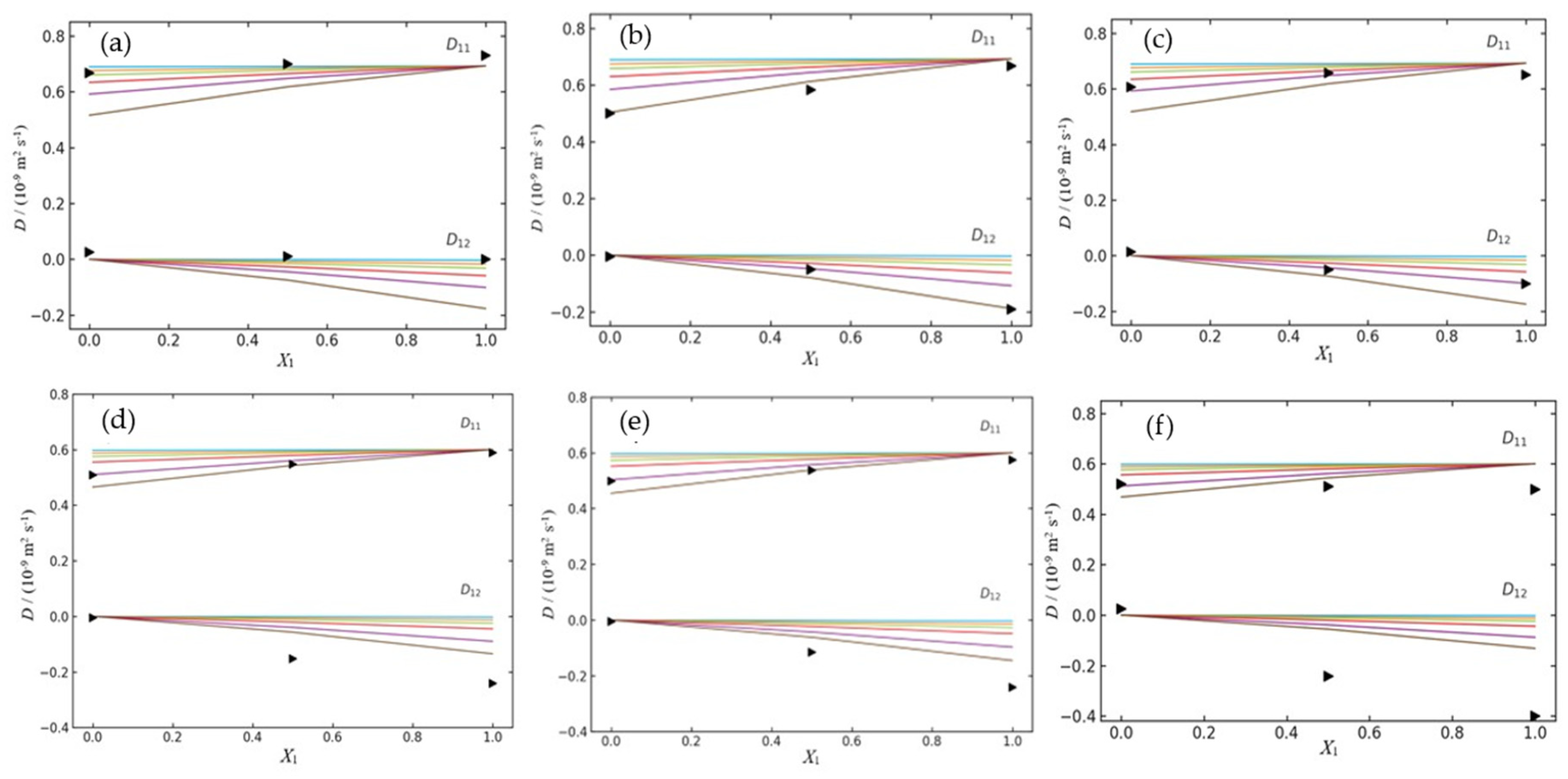 - Vitagliano, V.; Sartorio, R. Diffusion in Ternary Systems. J. Phys. Chem. 1970, 74, 2949–2956. [Google Scholar] [CrossRef]