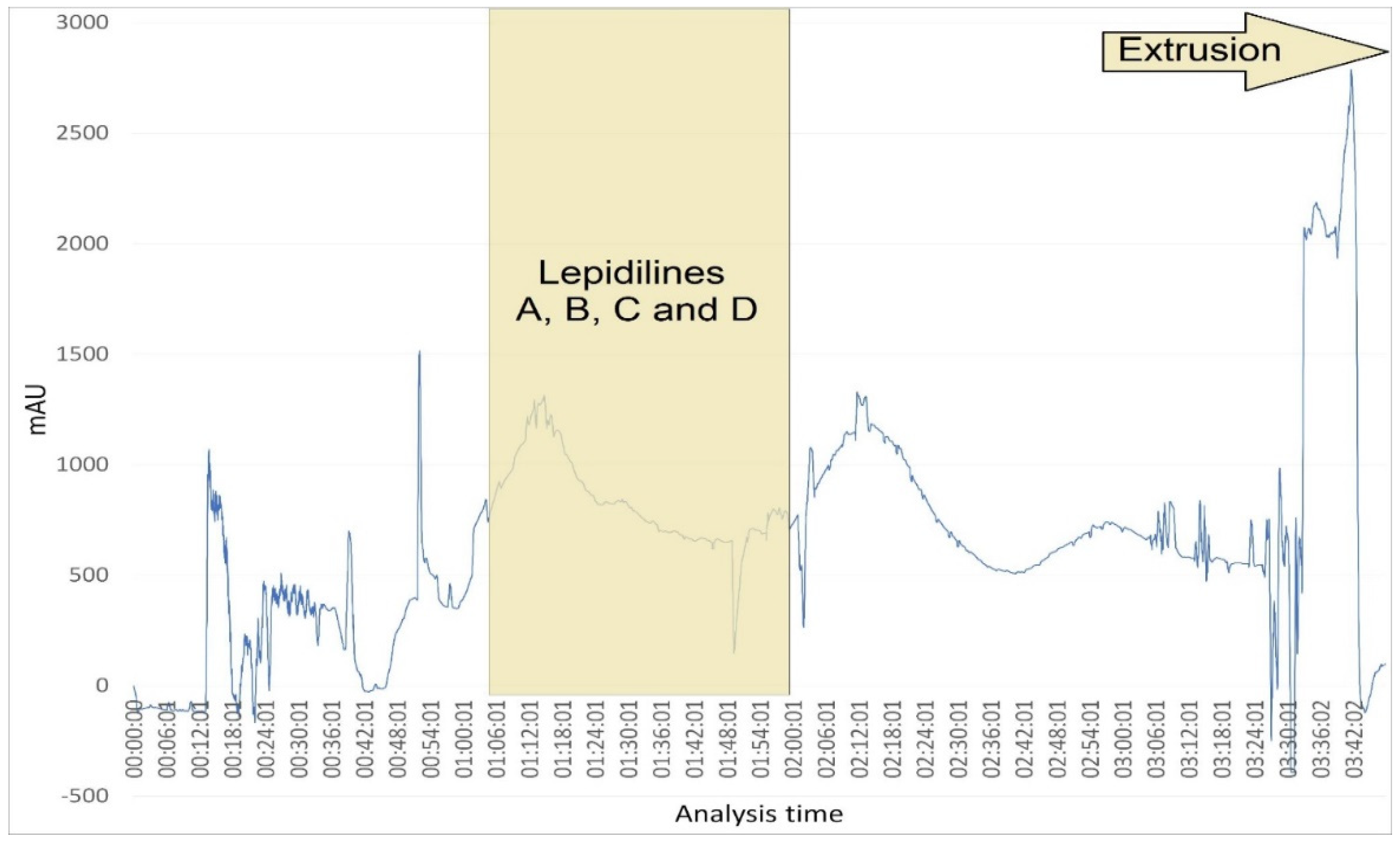 Previous attempts at isolating lepidilines were based on the application of conventional, costly, and resource-consuming chromatographic techniques that included a multi-step separation on macroporous resin, Al