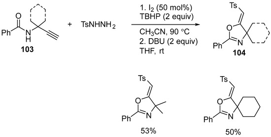 - Senadi, G.C.; Guo, B.-C.; Hu, W.-P.; Wang, J.-J. Iodine-Promoted Cyclization of N-Propynyl Amides and N-Allyl Amides via Sulfonylation and Sulfenylation. Chem. Commun. 2016, 52, 11410–11413. [Google Scholar] [CrossRef] [PubMed]