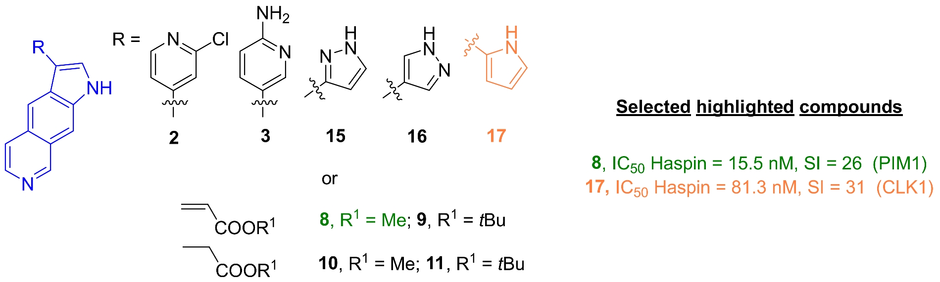 | Haspin | CLK1 | DYRK1A | CDK9 | GSK3 | CK1 | CDK5 | PIM1 | SI | |||||||||
