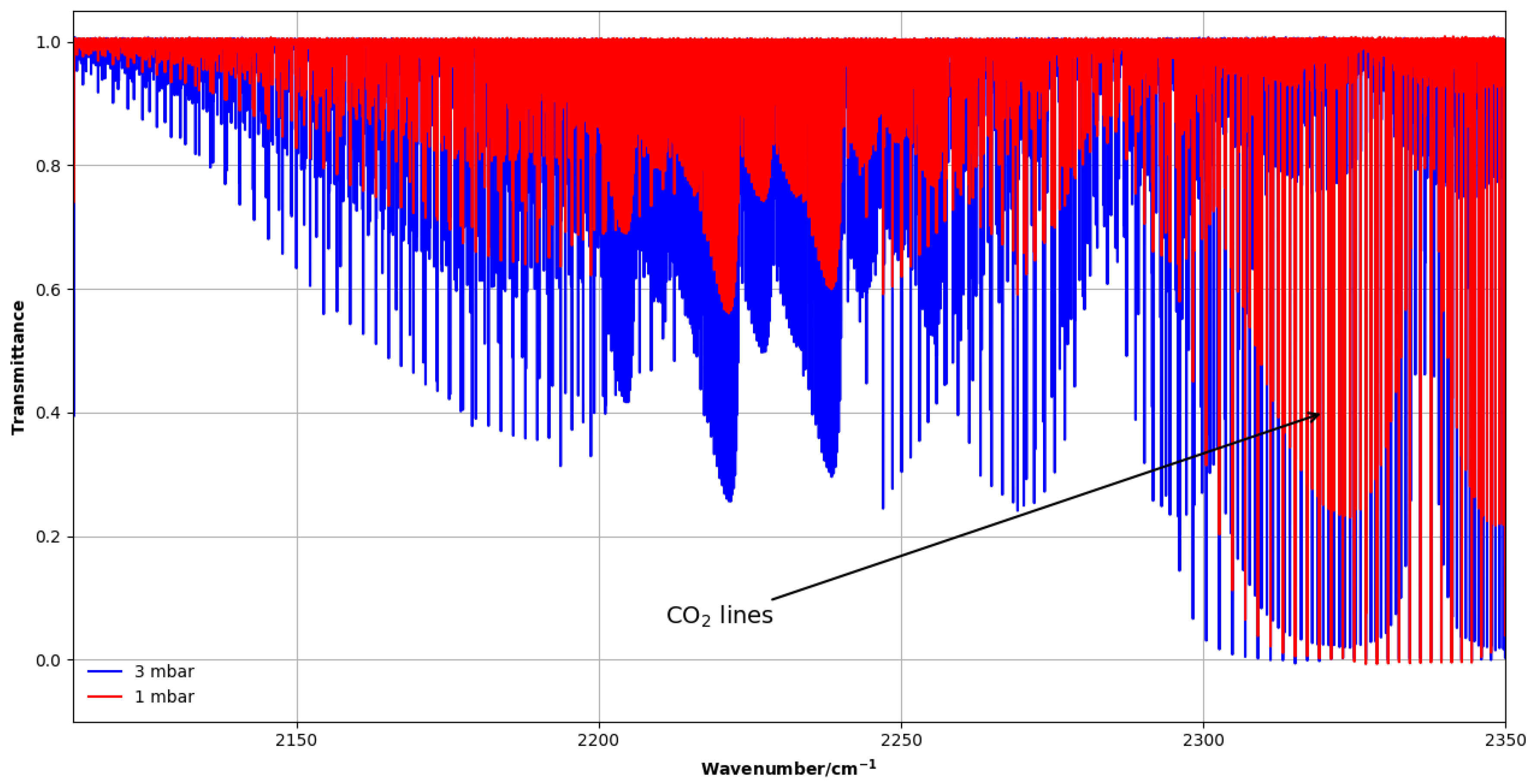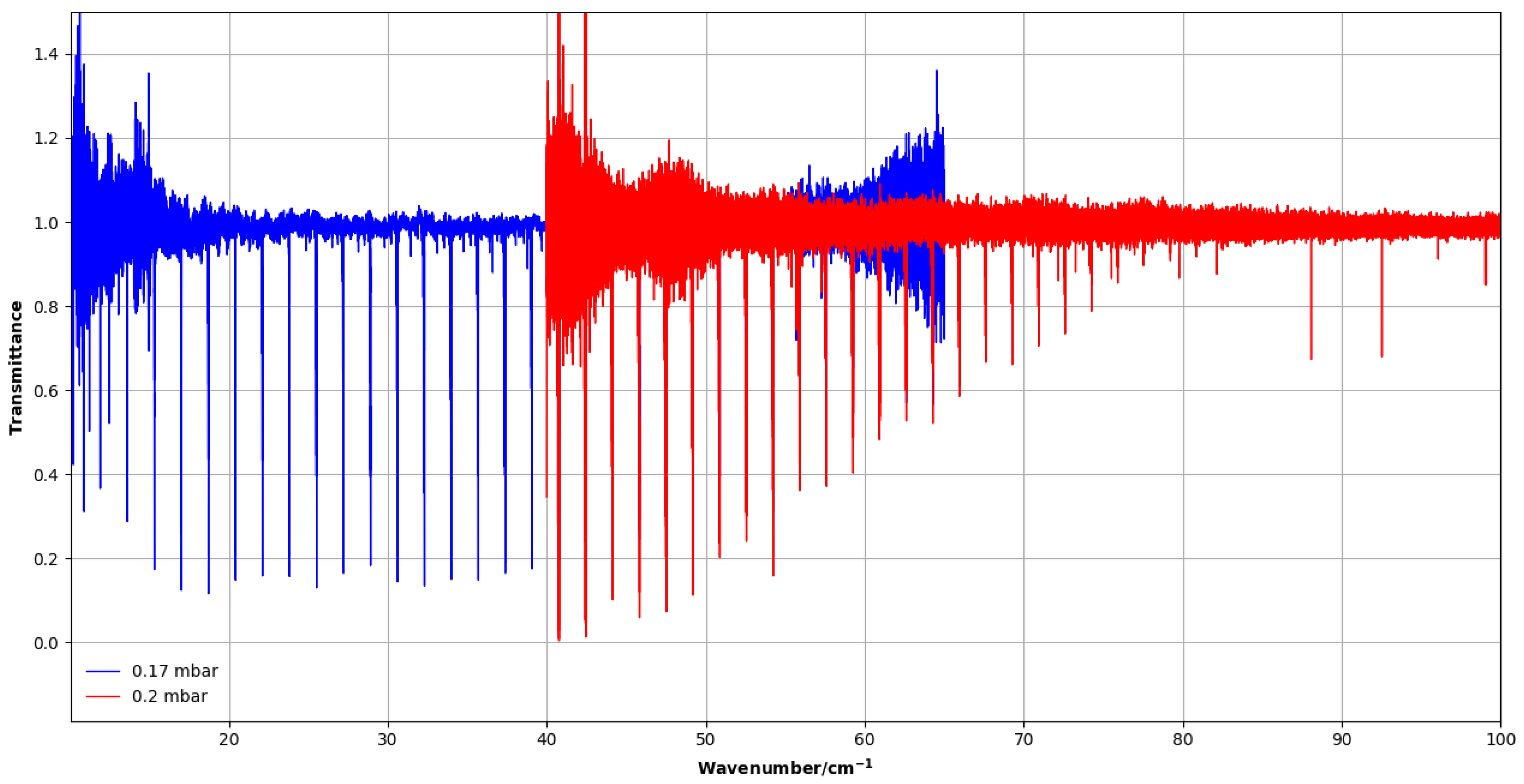 | Band | Range () | Path Length (m) | Pressures (mbar) | Resolution () |