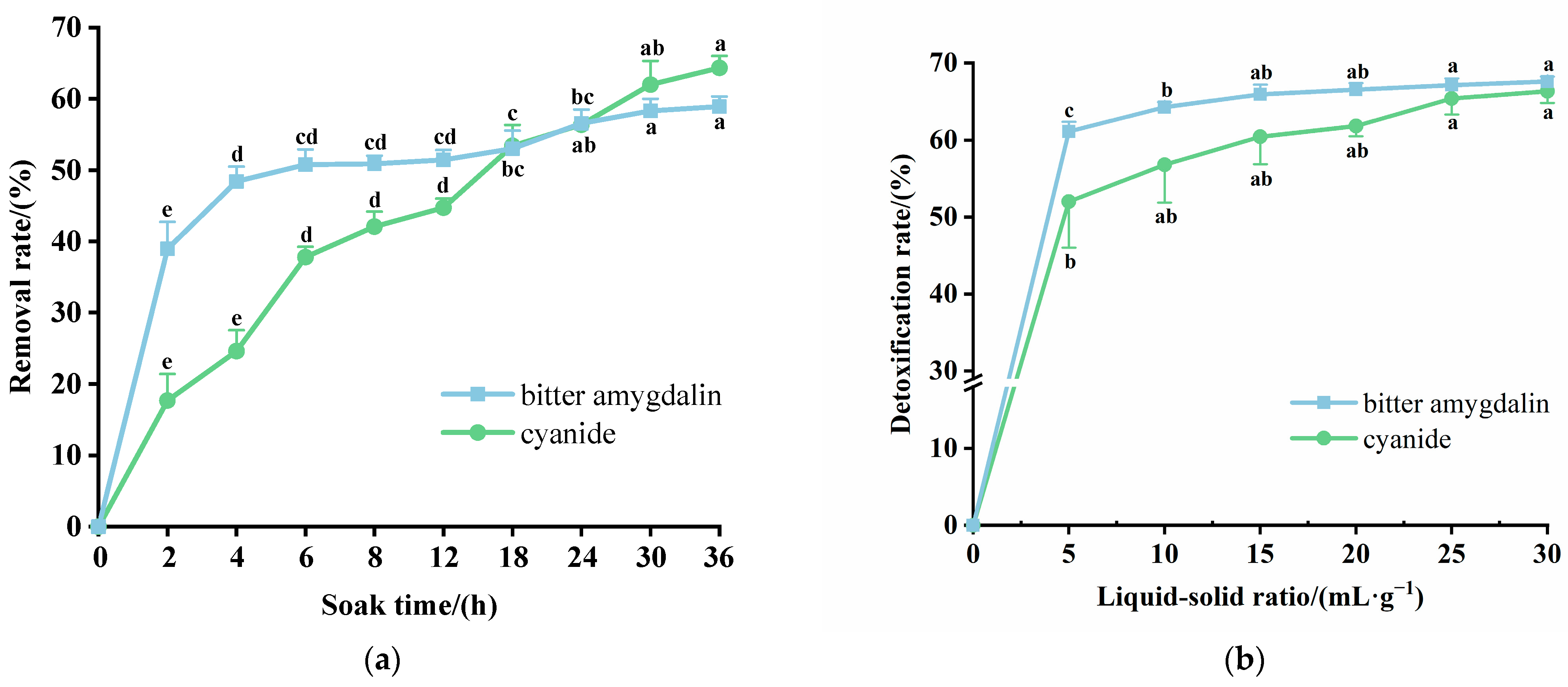 - Silem, A.; Günter, H.-O.; Einfeldt, J.; Boualia, A. The occurrence of mass transport processes during the leaching of amygdalin from bitter apricot kernels: Detoxification and flavour improvement. Int. J. Food Sci. Technol. 2006, 41, 201–213. [Google Scholar] [CrossRef]