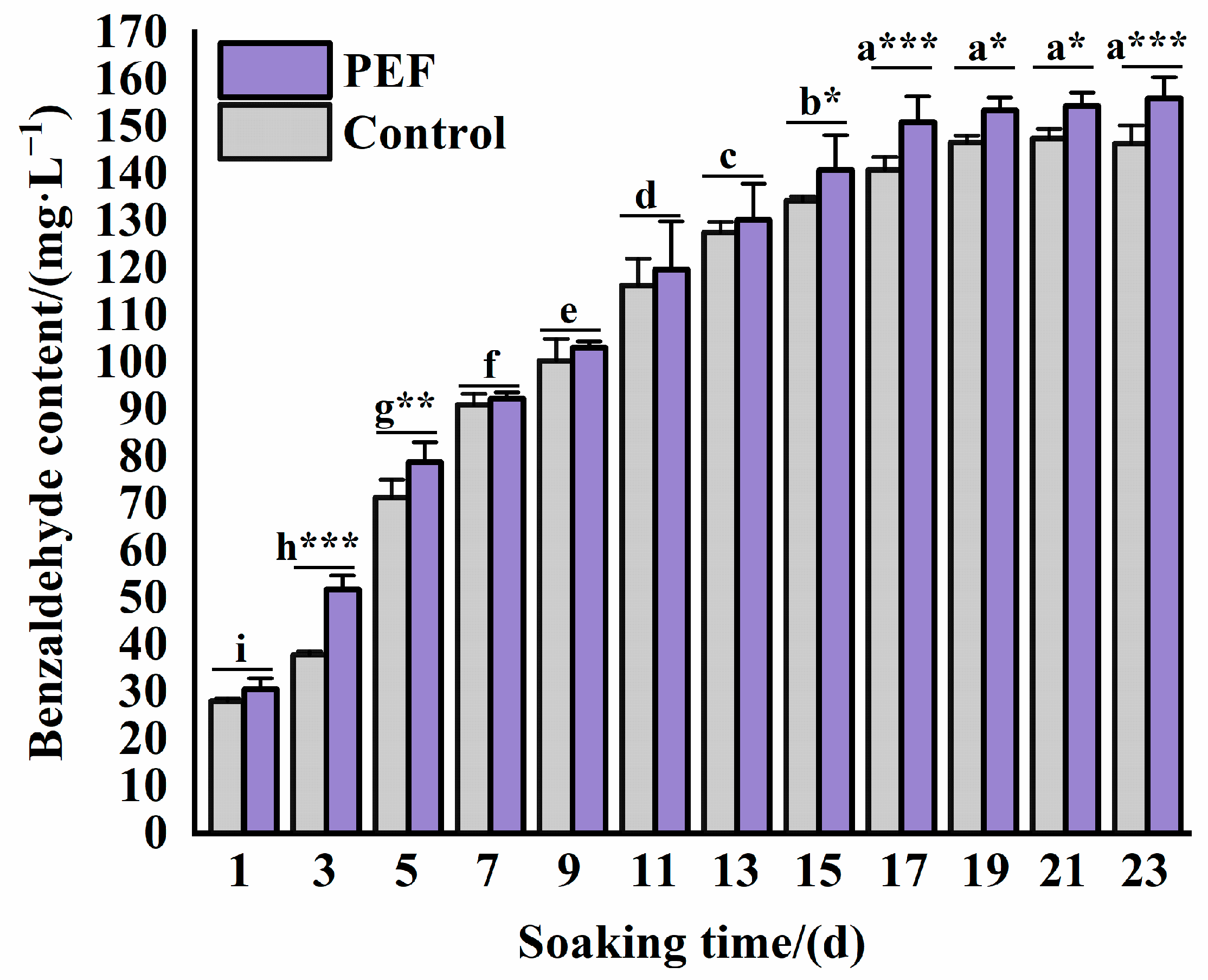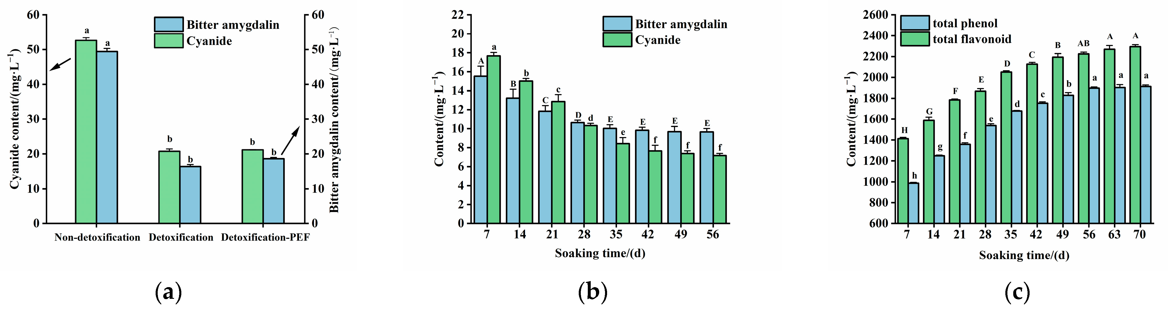 4.5. Effect of PEF-Assisted Extraction on the Content of Benzaldehyde, Amygdalin, and Cyanide During Kernel Soaking
