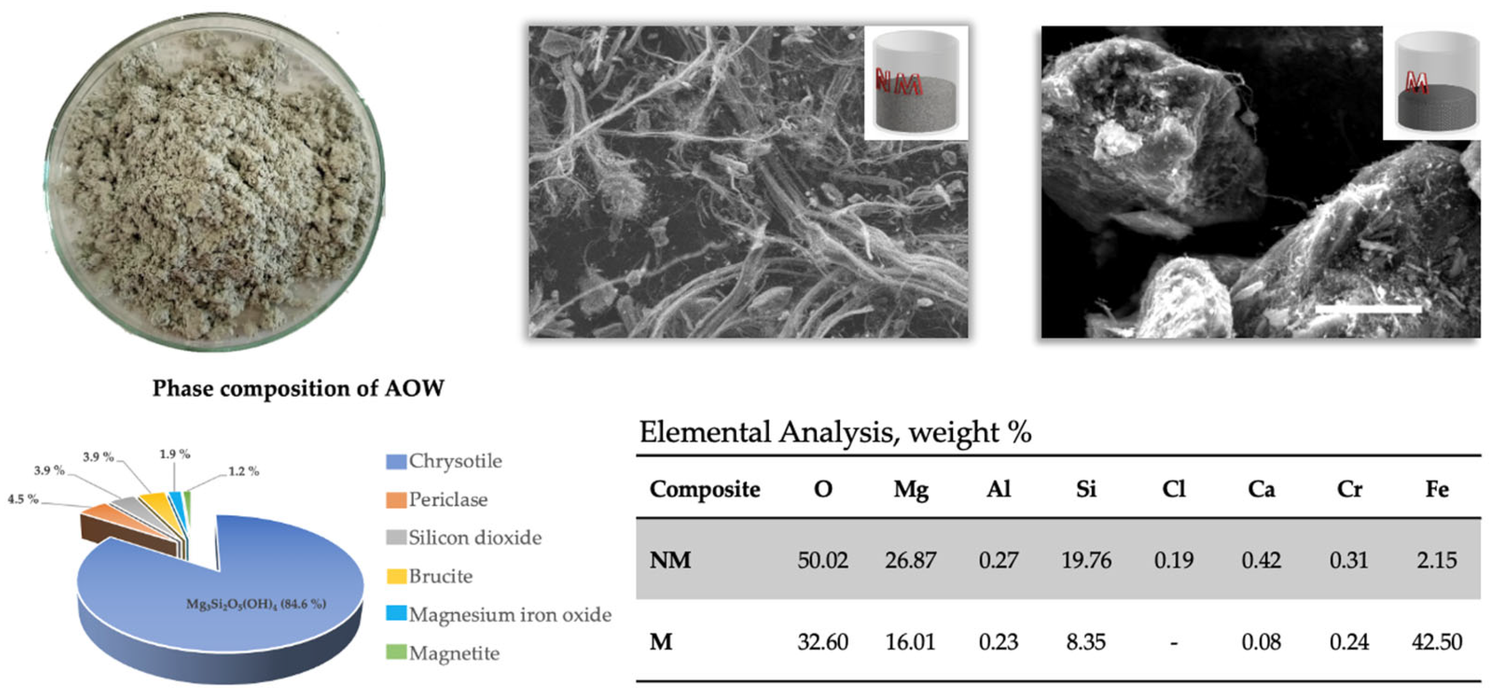 - Valouma, A.; Verganelaki, A.; Tetoros, I.; Maravelaki-Kalaitzaki, P.; Gidarakos, E. Magnesium oxide production from chrysotile asbestos detoxification with oxalic acid treatment. J. Hazard. Mater. 2017, 336, 93–100. [Google Scholar] [CrossRef] [PubMed]