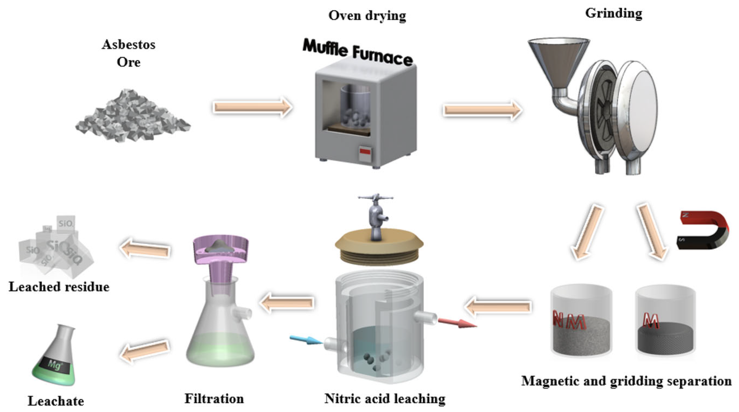 - Chu, L.; Sun, H.; Peng, T.; Lu, H.; Li, M.; Zhang, Y.; Luo, L. Selective extraction of Mg2+ from chrysotile asbestos tailings via ammonium sulfate roasting and water leaching: Process optimization and mechanistic insights. J. Clean. Prod. 2025, 515, 145773. [Google Scholar] [CrossRef]