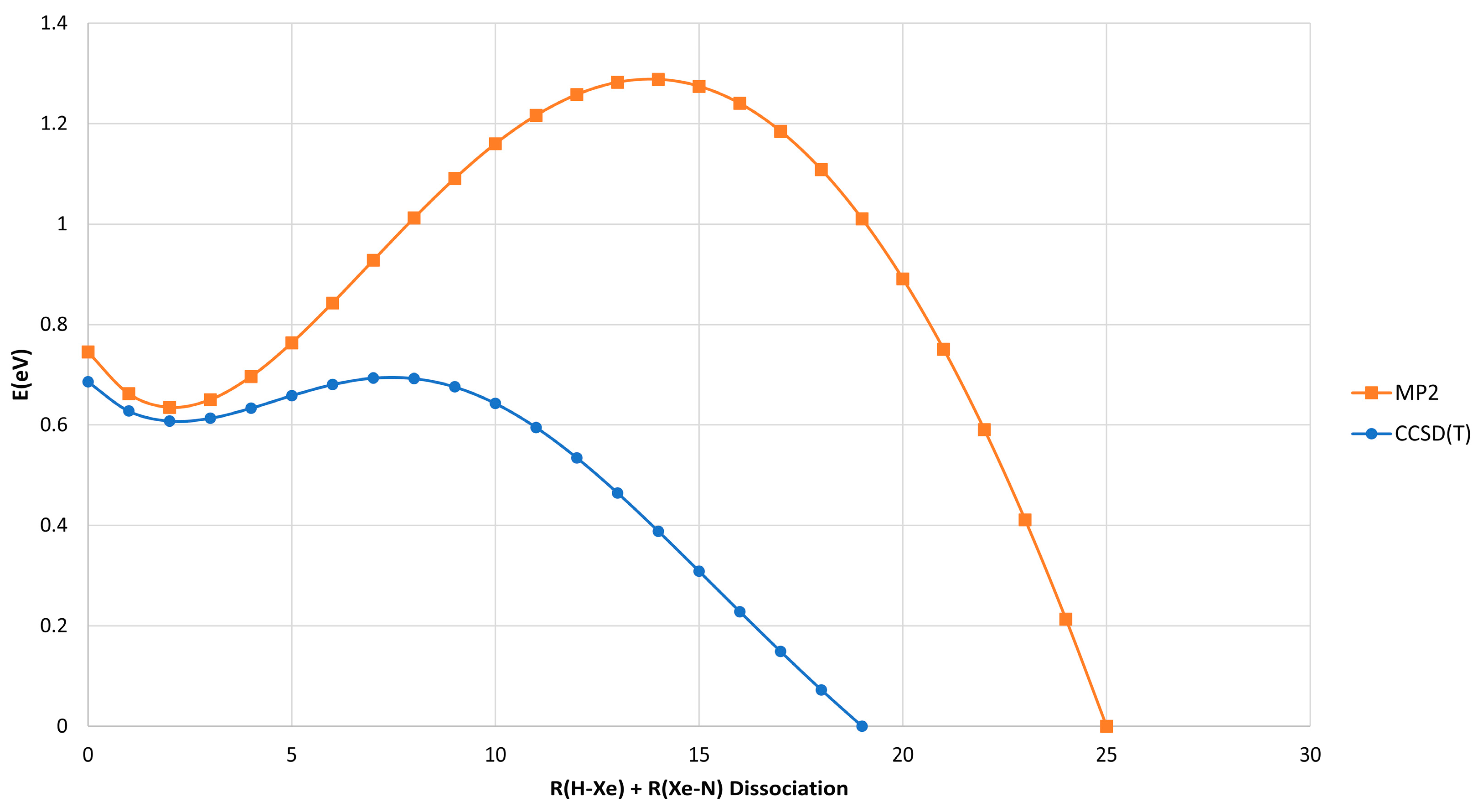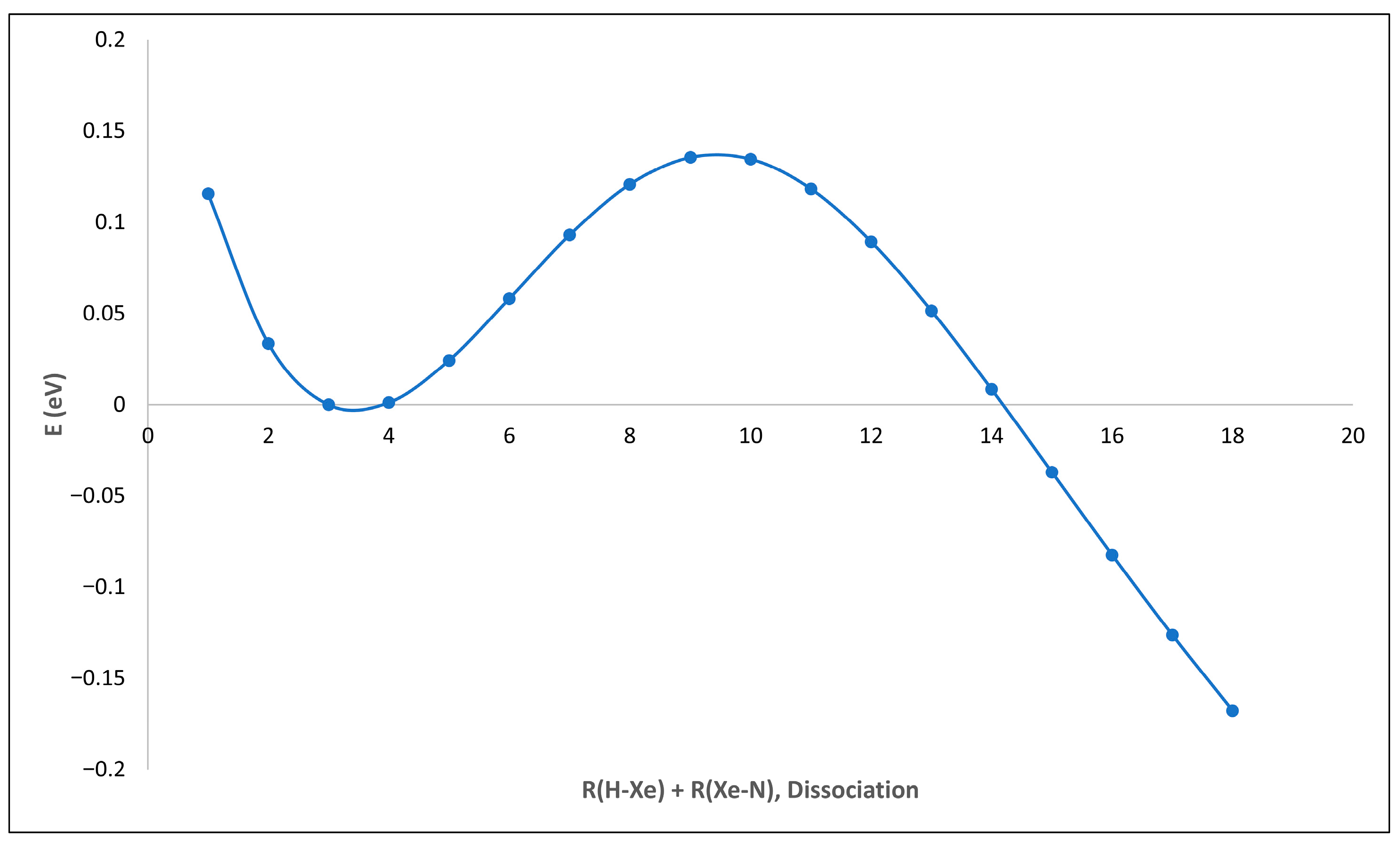 - Cohen, A.; Gerber, R.B. Prediction of New Noble-Gas Molecules with Multiple Xe-N Bonds. SSRN 2025. [Google Scholar] [CrossRef]