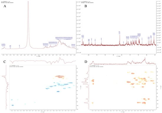 NMR spectral analysis of FAP-W. (A) 1H spectrum; (B) 13C spectrum; (C) HSQC spectrum. (D) HMBC spectrum.