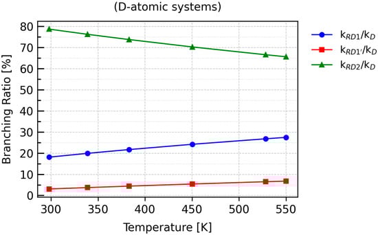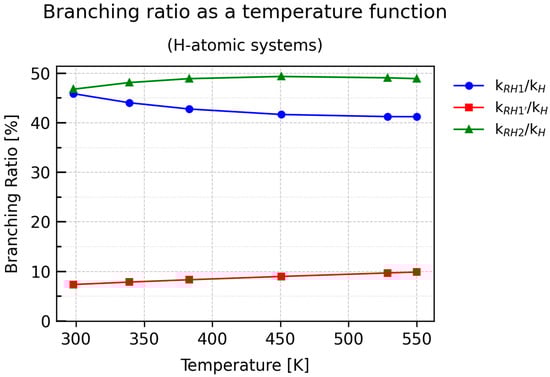 These results indicate that only hydrogen or deuterium atom abstraction occurs within the reaction system. Notably, the total rate constants obtained as the sum of the individual abstraction steps are consistently lower than those derived from Equations (6) and (7), likely due to experimental factors associated with Equations (19)–(22).