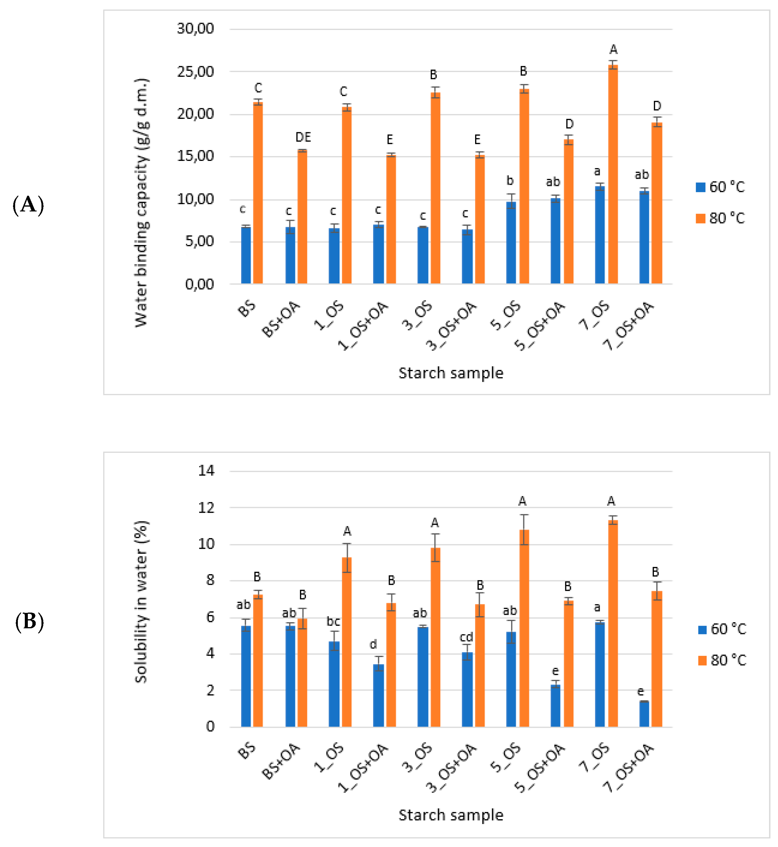 4.3.2. Determination of Water Binding Capacity and Water Solubility