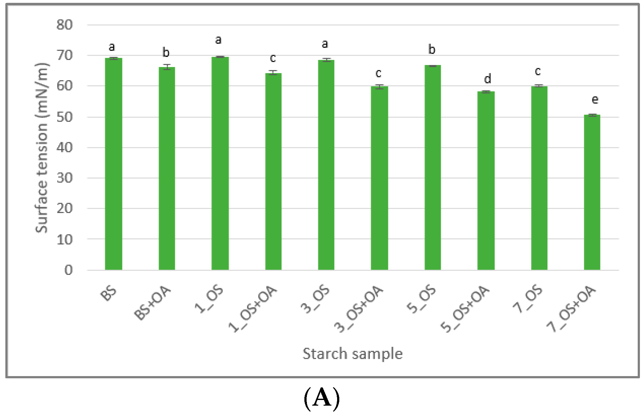 2.1. Evaluation of Oleic Acid-Octenyl Succinate Starch Mixture Properties