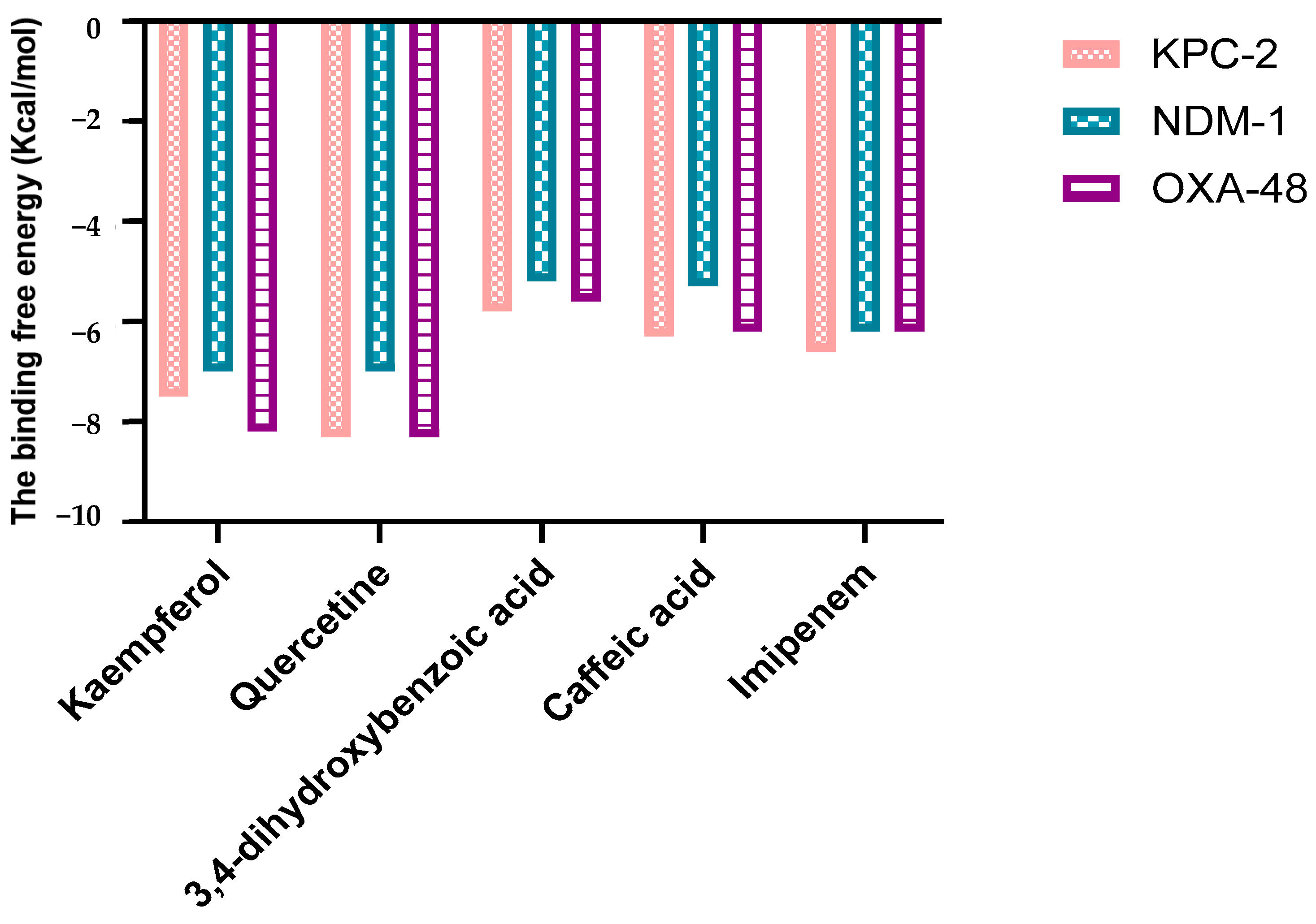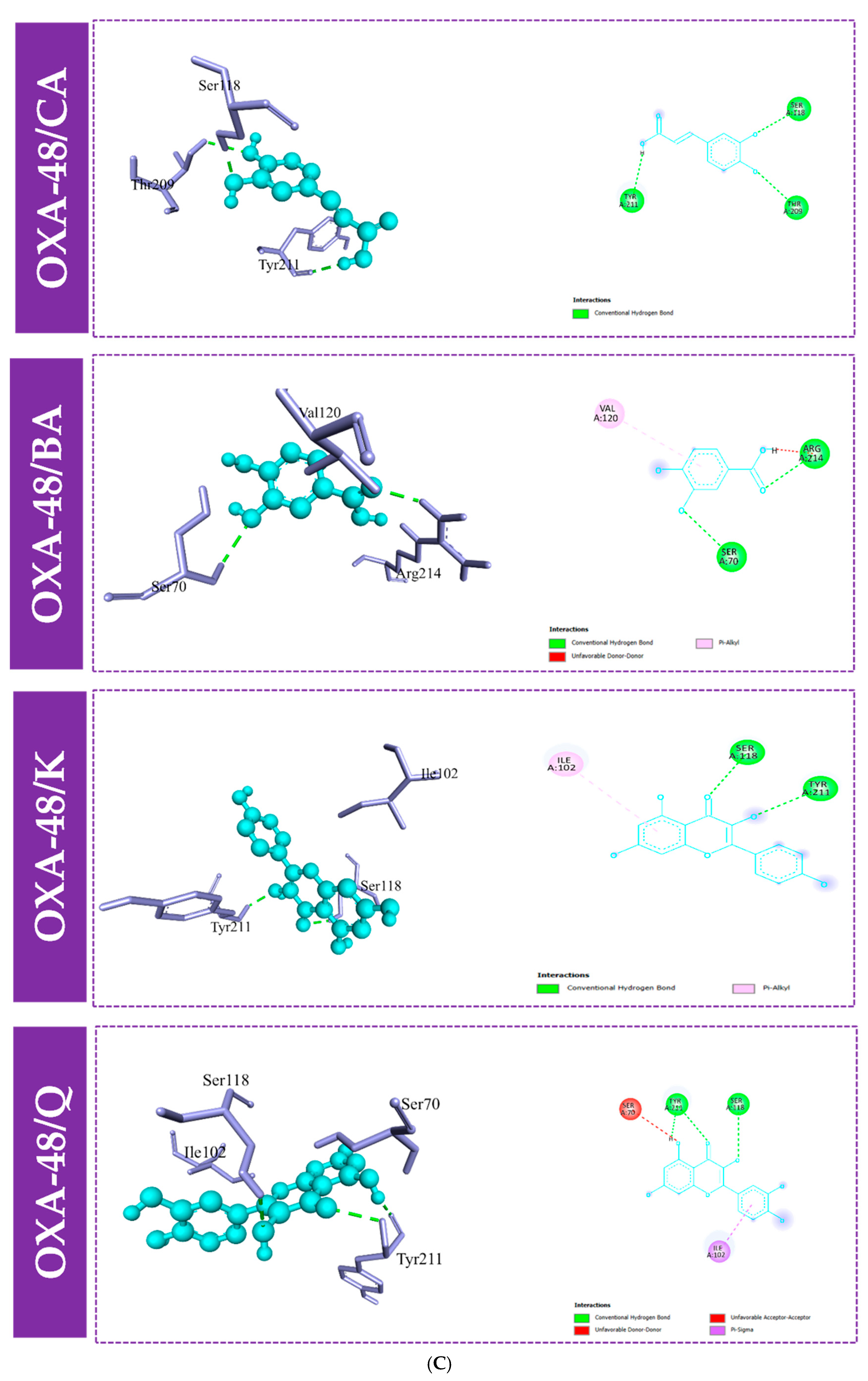 - Zhang, Y.; Chen, C.; Cheng, B.; Gao, L.; Qin, C.; Zhang, L.; Zhang, X.; Wang, J.; Wan, Y. Discovery of Quercetin and Its Analogs as Potent OXA-48 Beta-Lactamase Inhibitors. Front. Pharmacol. 2022, 13, 926104. [Google Scholar] [CrossRef]