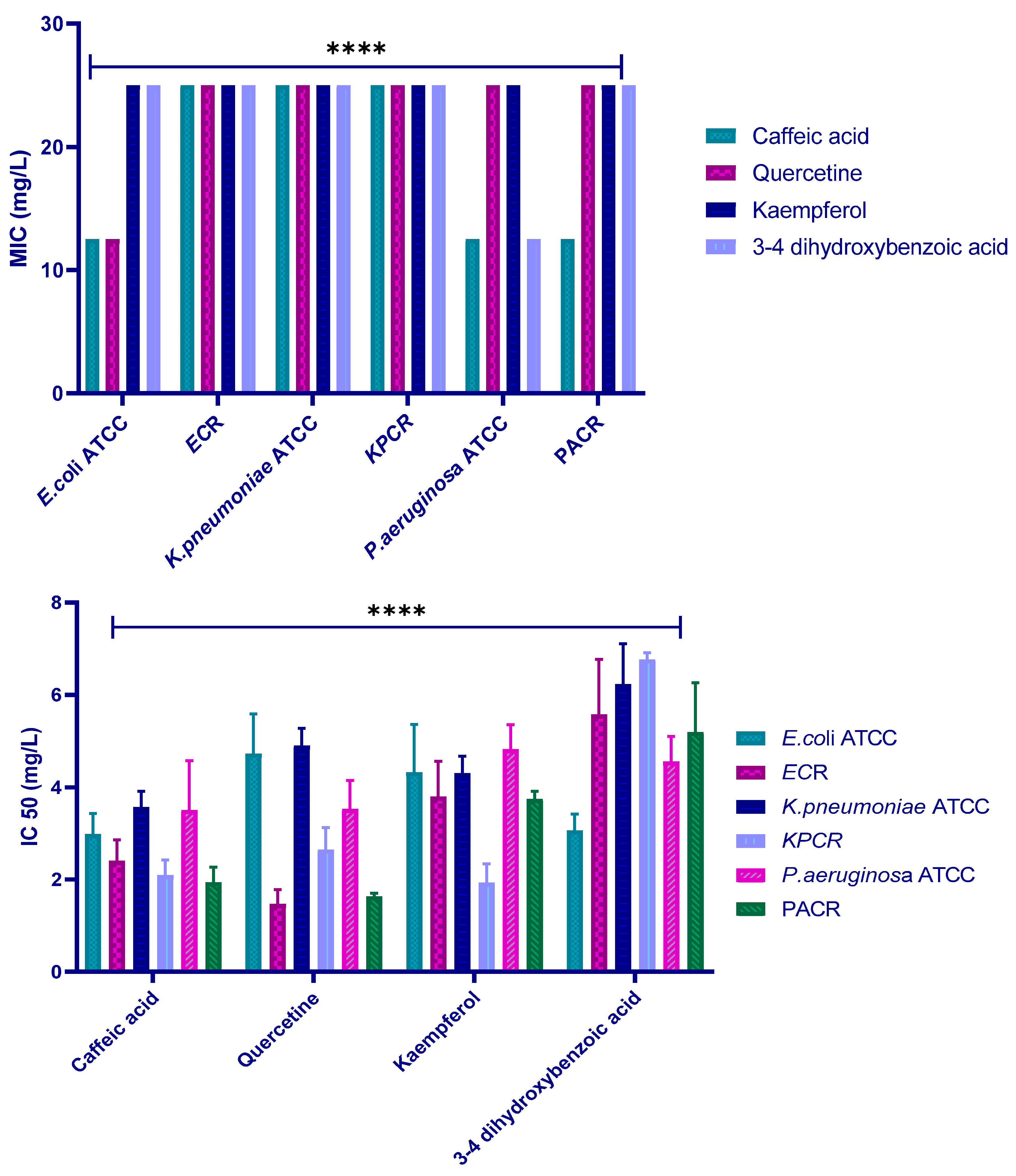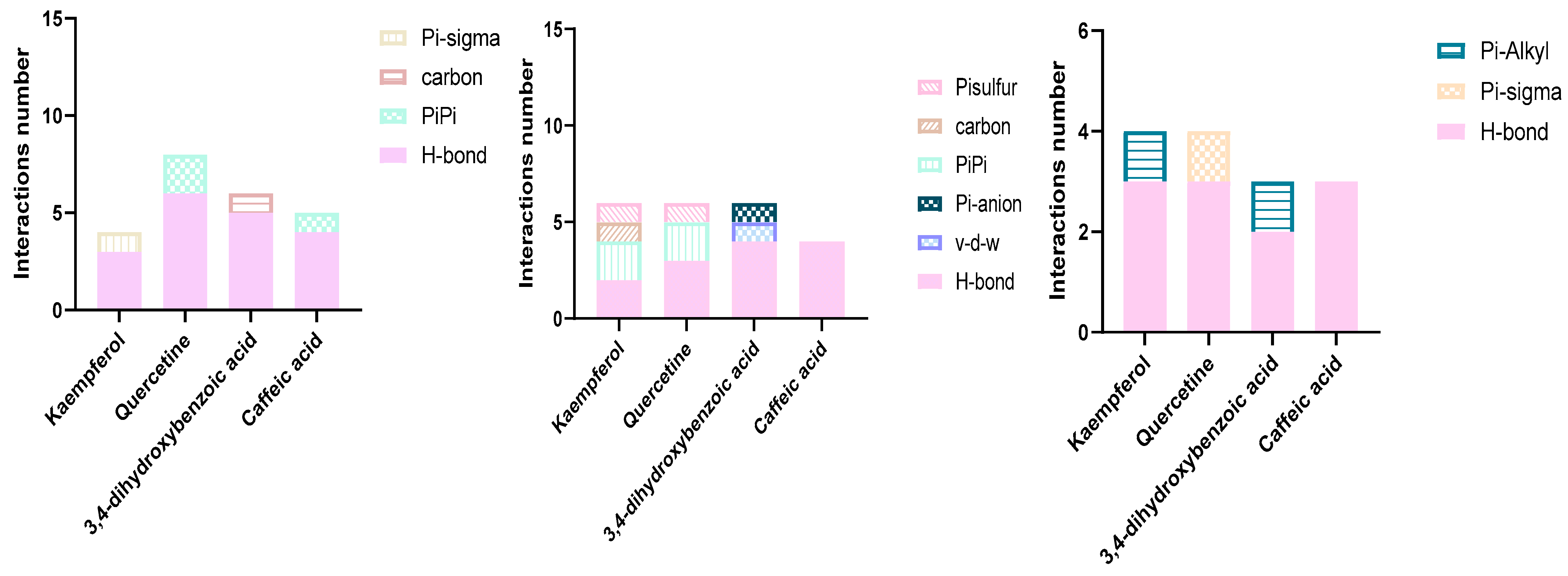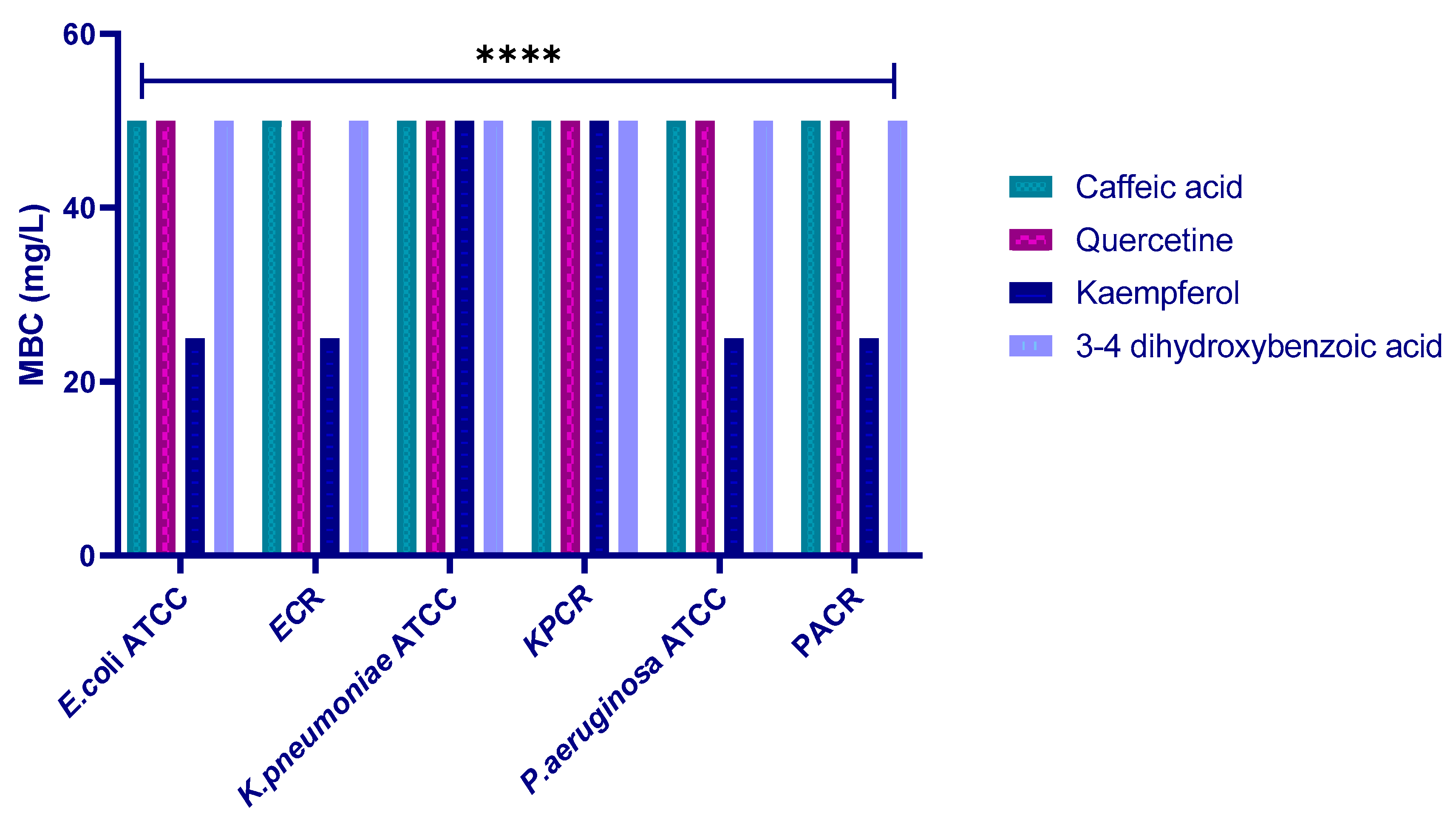 | Caffeic Acid | Quercetin | Kaempferol | 3,4-Dihydroxybenzoic Acid | |