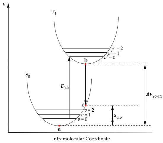 Next, we will delve into the emission properties of the Ru complexes under investigation. Along these lines, we have calculated a series of photophysical parameters related to emission. These parameters are (a) the vibrational reorganization energy, λvib, derived from the energy difference between the S0 state and the Franck—Condon S0 state; and (b) the zero–zero transition energy, E0-0, calculated as the Zero-Point Energy (ZPE)-corrected total electronic energies of the T1 and S0 states and (c) the total electronic energy difference between the T1 and S0 states. The values of the parameters related to the emission properties of the hybrid complexes under study are tabulated in Table 3. The emission parameters are also depicted in Scheme 1 to clarify their meaning.