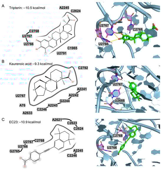 2.5. Computational Analysis Suggests Tripterin’s PTC-Centered Interactions on 23S rRNA
