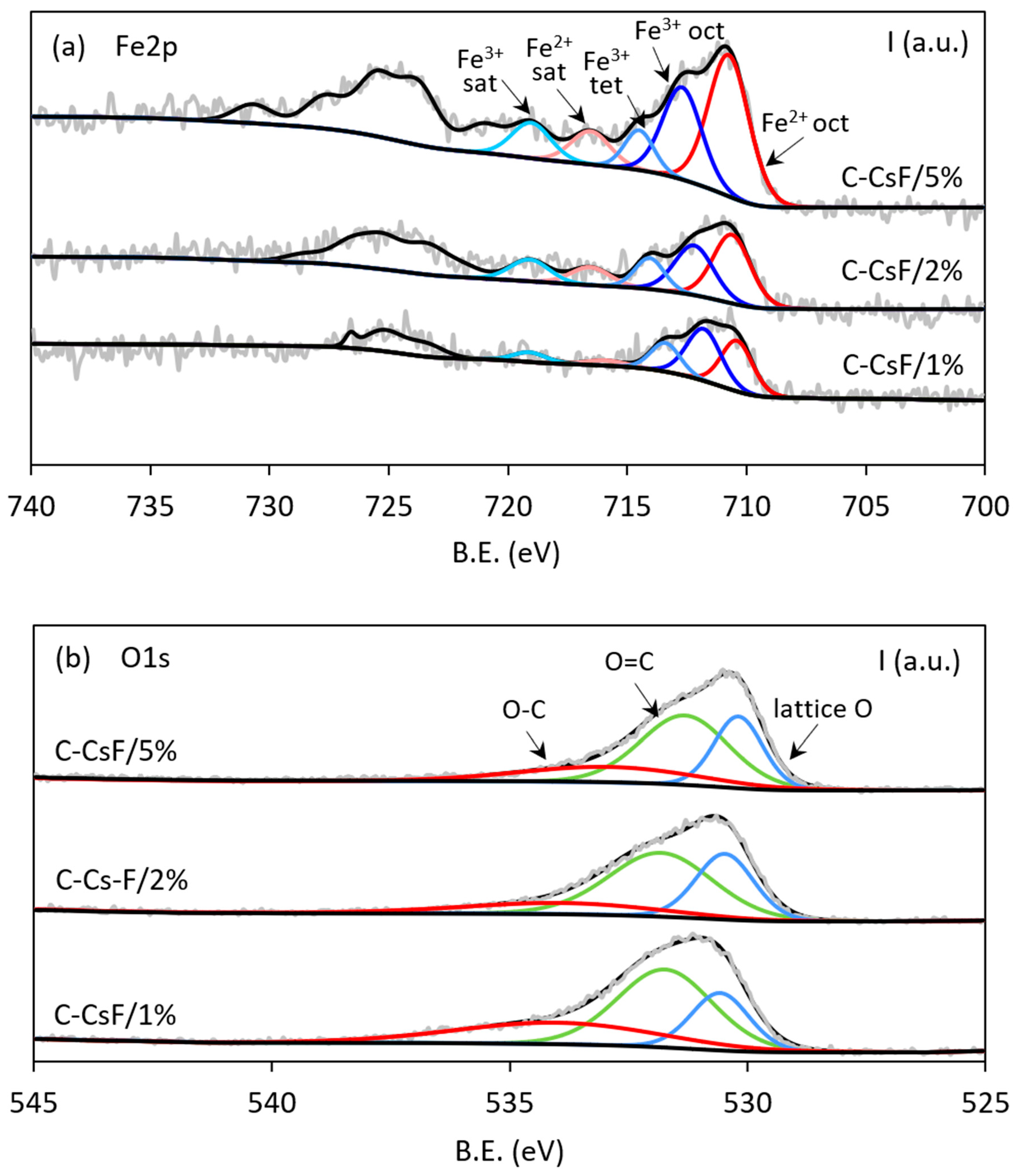 - Yamashita, T.; Hayes, P. Analysis of XPS Spectra of Fe2+ and Fe3+ Ions in Oxide Materials. Appl. Surf. Sci. 2008, 254, 2441–2449. [Google Scholar] [CrossRef]