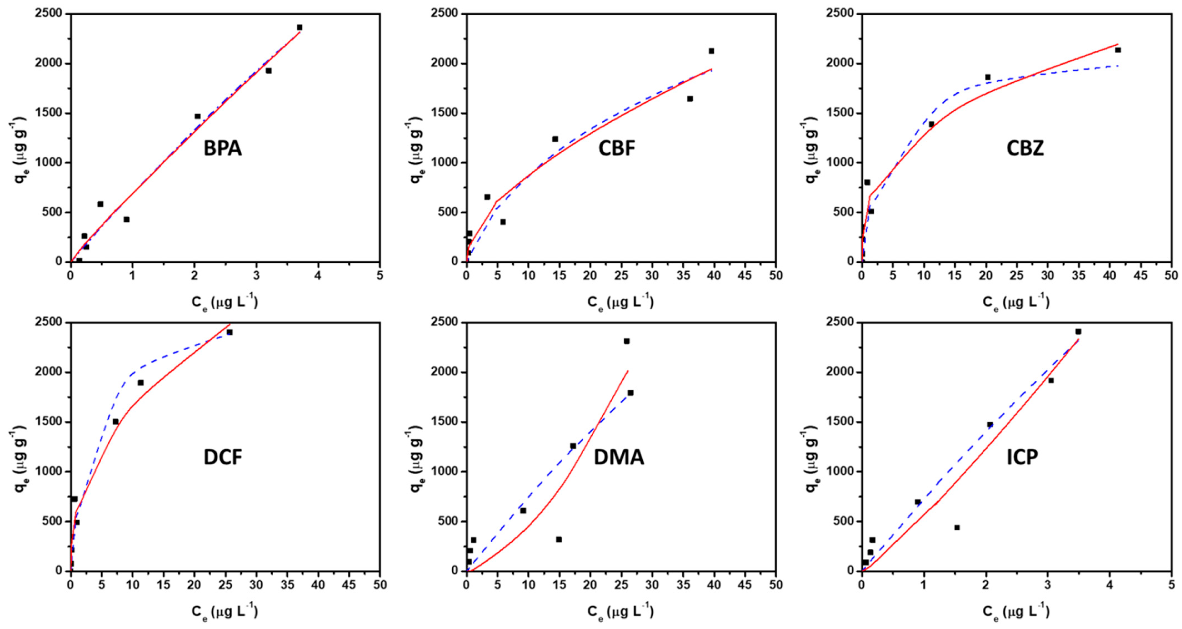 3.3. Adsorption of ECs onto Carbon Adsorbents