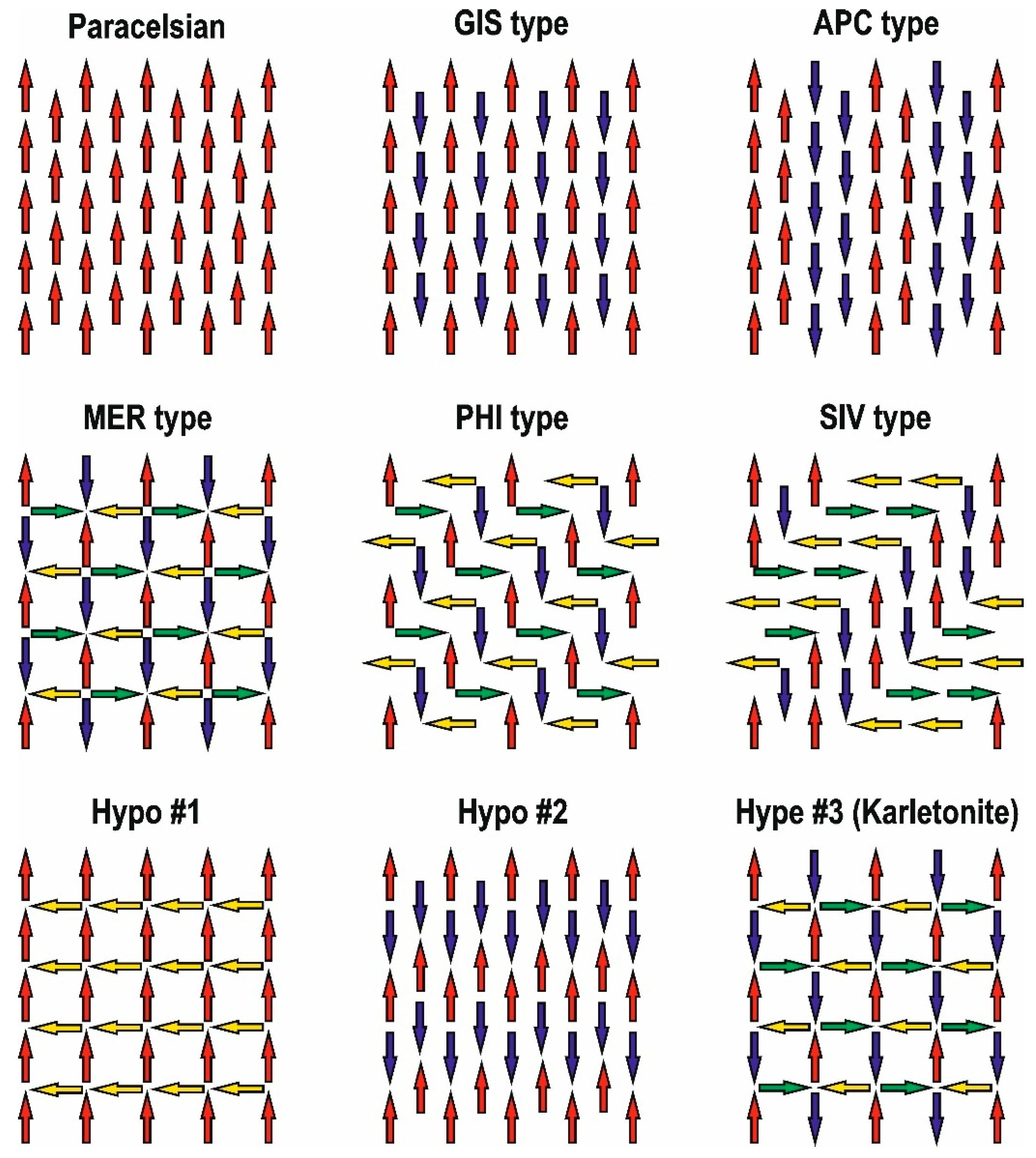| PHI | Phillipsite | a = 9.890 b = 14.064 c = 14.046 Cmcm | 5.4/ 3.69/ 3.11/ 3.31 | 16.4 | 24T-phi | t-phi t-oto | 48 | 2.918 | 140.078 |