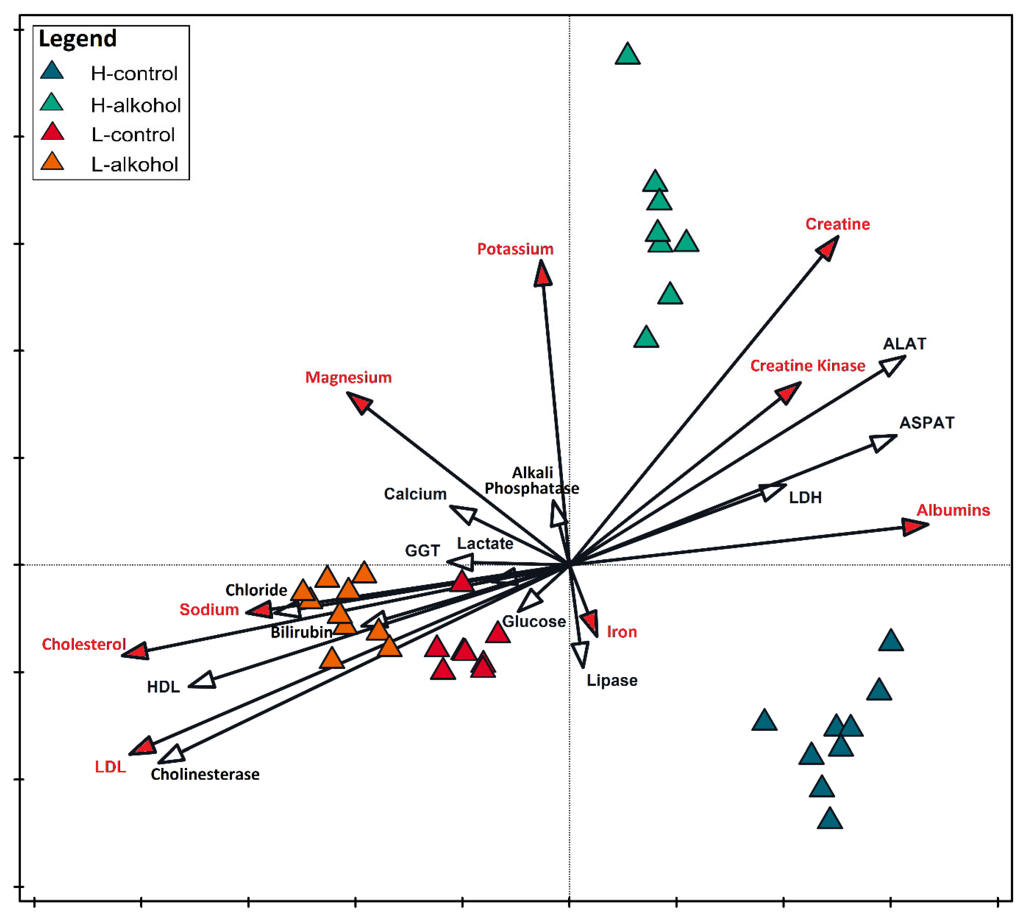 | Group | Parameter | H-Control | H-Alcohol | L-Control | L-Alcohol | p-Value |