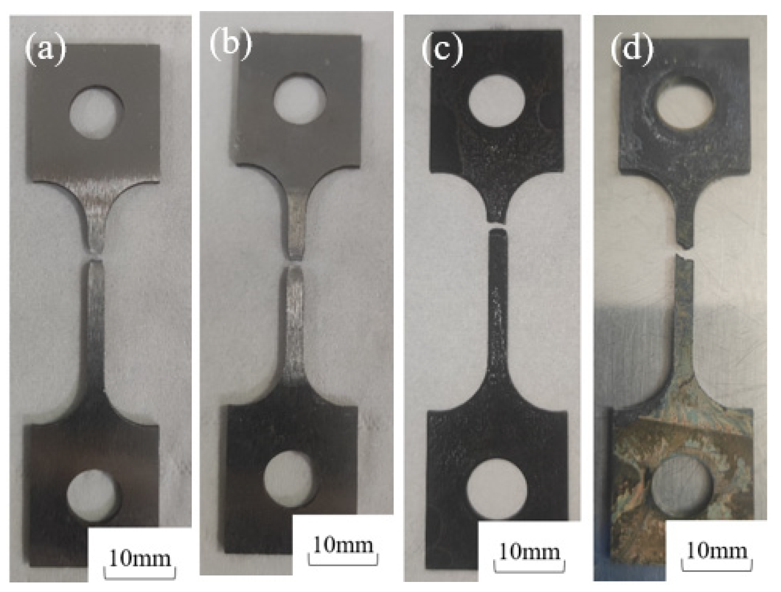 Section 5)—it can be inferred that the stress corrosion cracking mechanism dominated by hydrogen embrittlement is the dominant mechanism leading to the deterioration in the performance of the 20# steel weld under the high-sulfur conditions simulated in this experiment.
