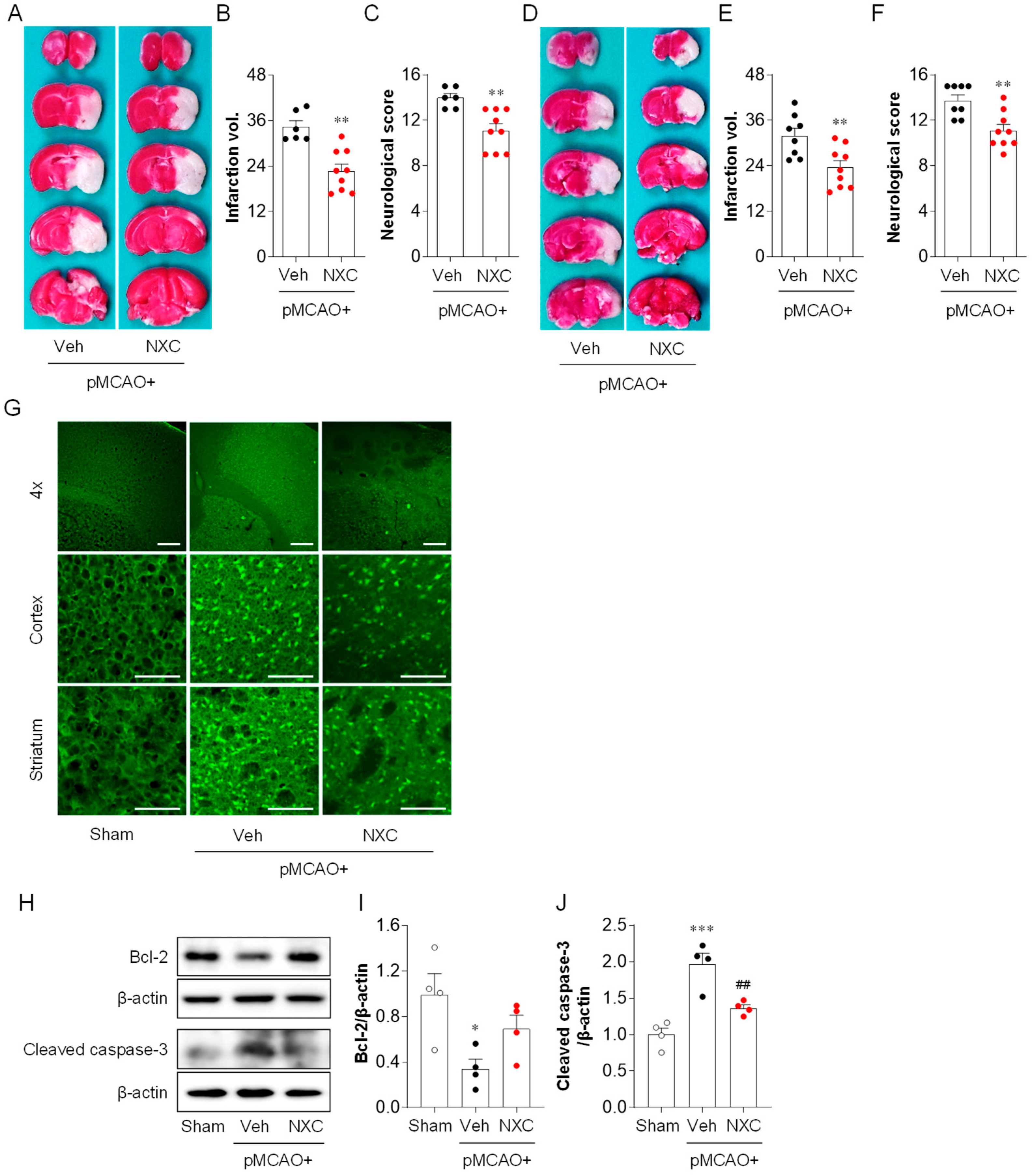 2.1. NXC736 Attenuates Brain Damage and Improves Neurological Functions One and Three Days After pMCAO Challenge
