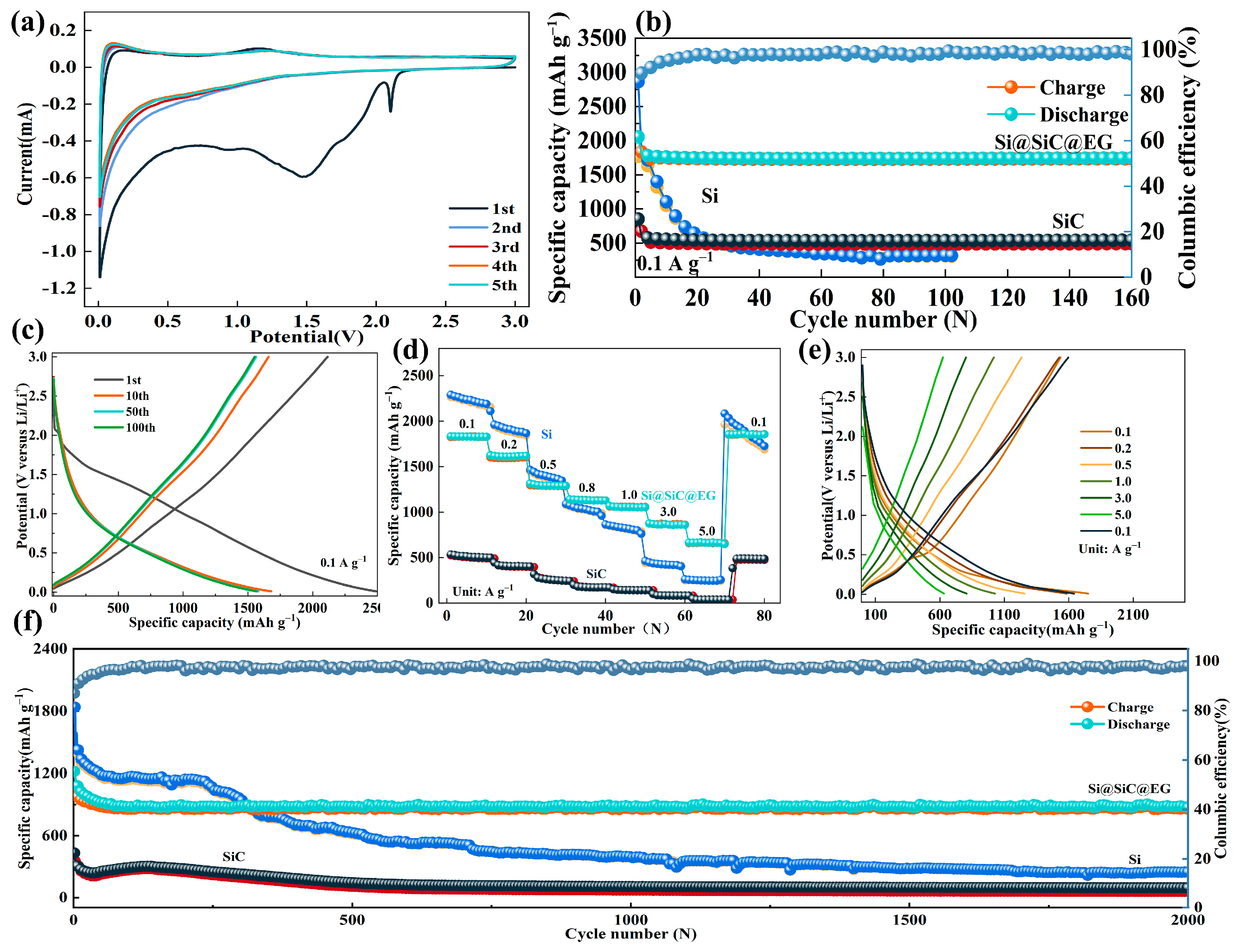 Chicago/Turabian StyleZhao, Huangyu, Sihao He, Changlong Sun, Kesheng Gao, Honglin Li, Qiuju Zheng, Lingshan Geng, Yan-Jie Wang, Enyue Zhao, and Yuanyuan Zhu. 2025. "Interfacial Electronic Coupling in Si@SiC@EG Core–Shell Architectures Enables High-Capacity and Long-Life Lithium-Ion Batteries" Molecules 30, no. 23: 4517. https://doi.org/10.3390/molecules30234517