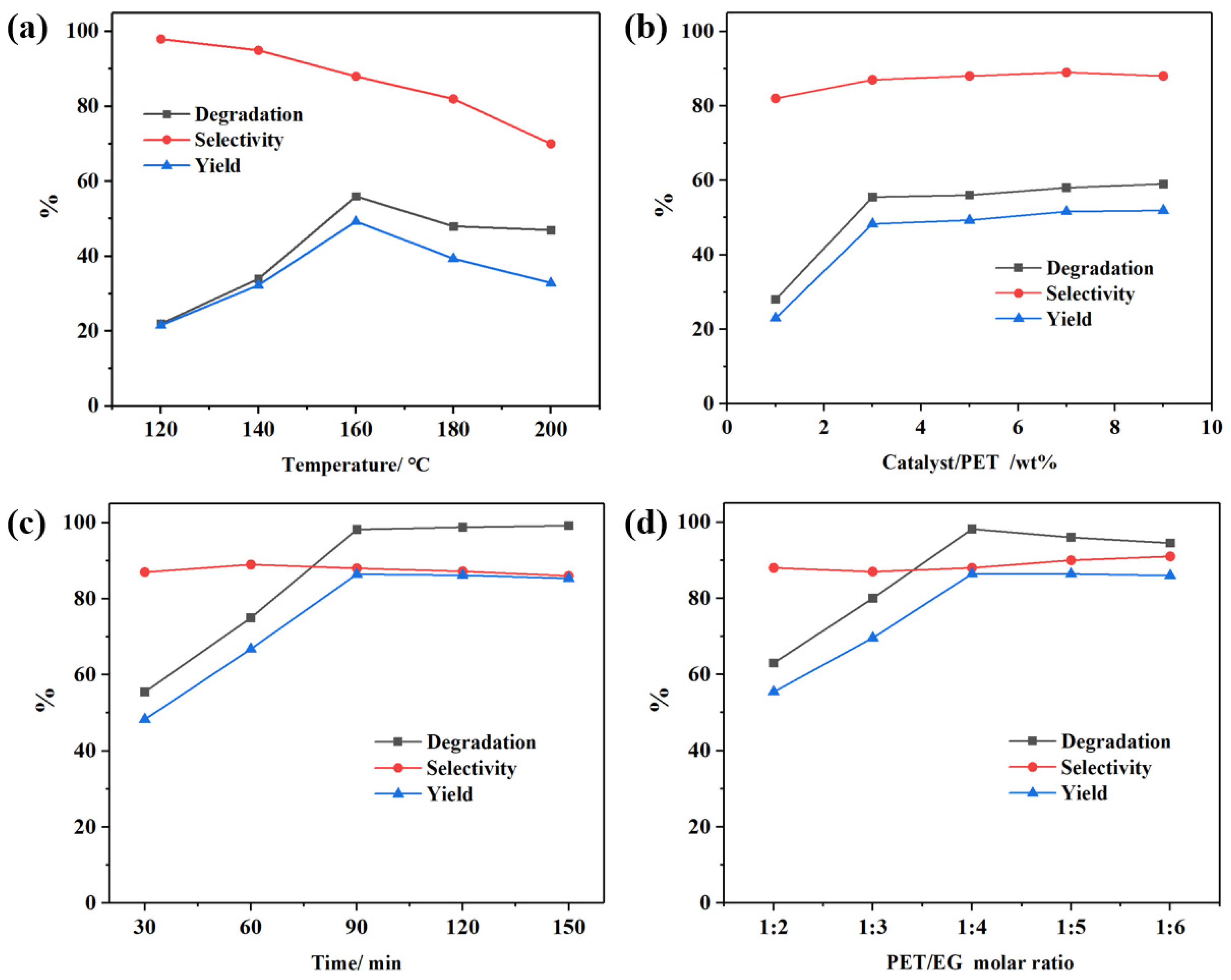 - Nguyet Thi Ho, L.; Minh Ngo, D.; Cho, J.; Jung, H.M. Enhanced catalytic glycolysis conditions for chemical recycling of glycol-modified poly(ethylene terephthalate). Polym. Degrad. Stab. 2018, 155, 15–21. [Google Scholar] [CrossRef]