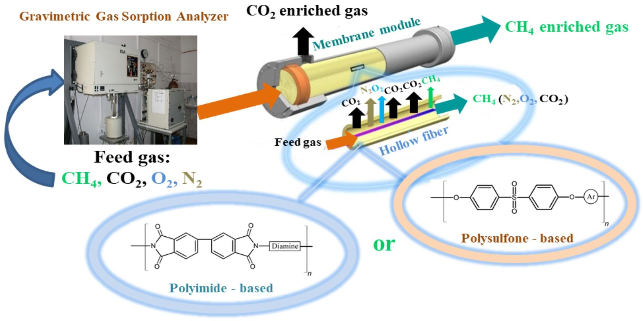 - Tańczyk, M.; Janusz-Cygan, A.; Pawlaczyk-Kurek, A.; Hamryszak, Ł.; Jaschik, J.; Janusz-Szymańska, K. Solubility and Diffusion of Main Biogas Components in a Glassy Polysulfone-Based Membrane. Molecules 2025, 30, 614. [Google Scholar] [CrossRef] [PubMed]