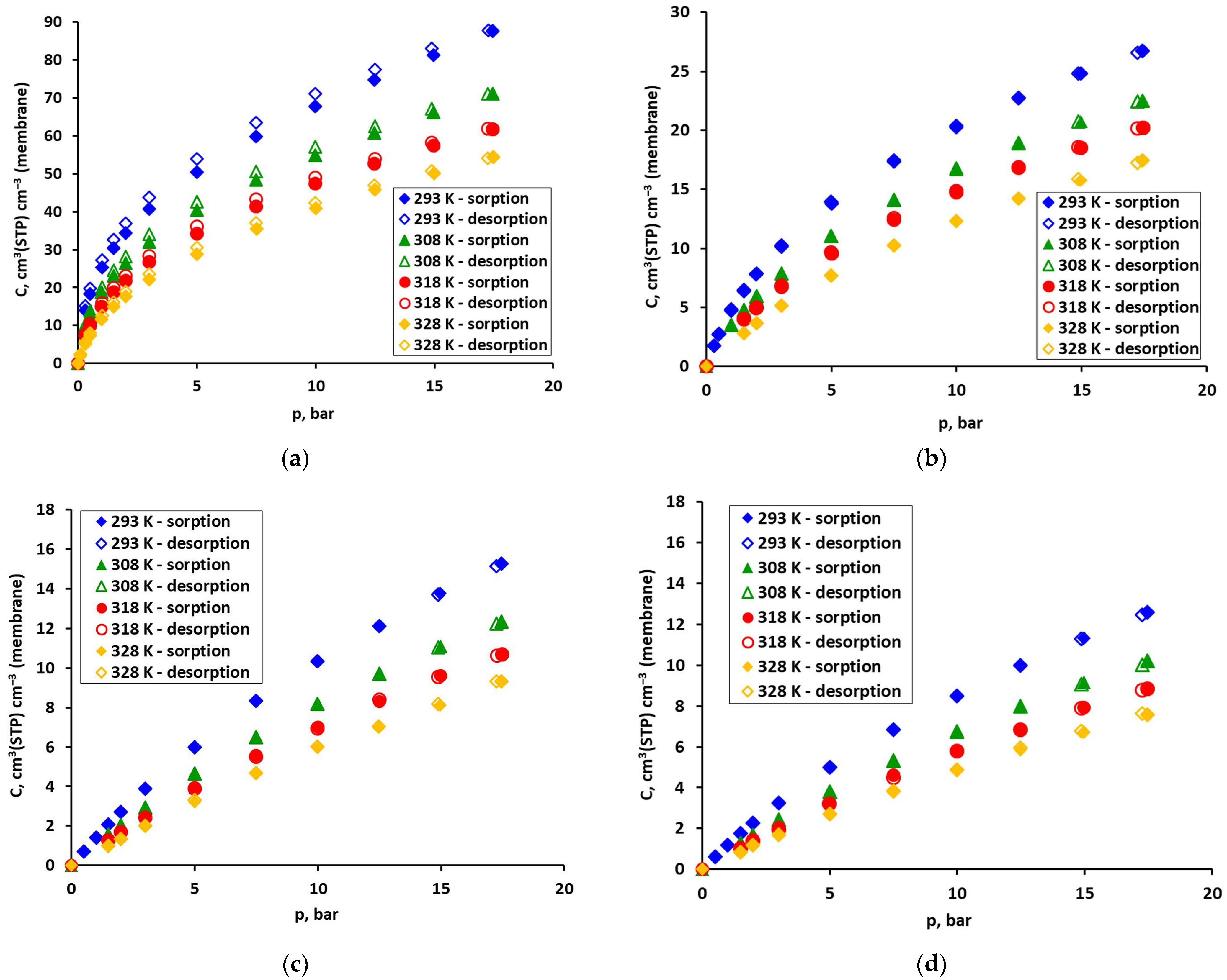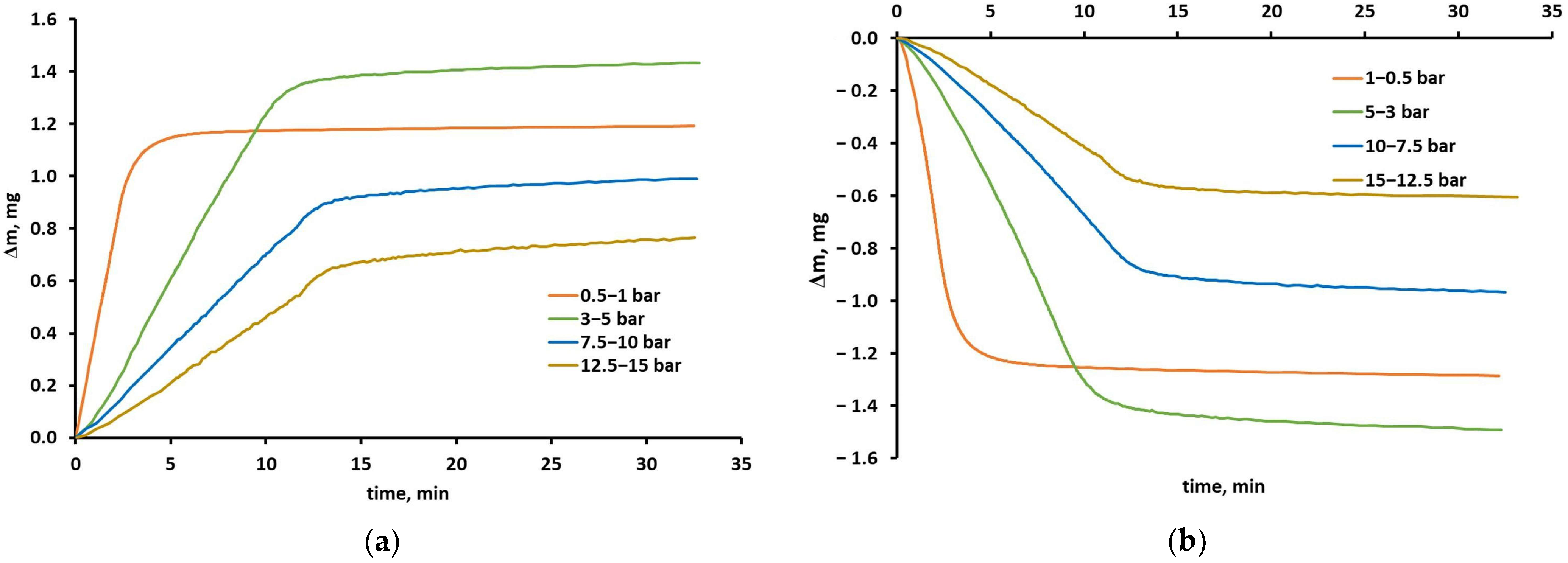 2.1. Sorption of CO2, CH4, O2 and N2